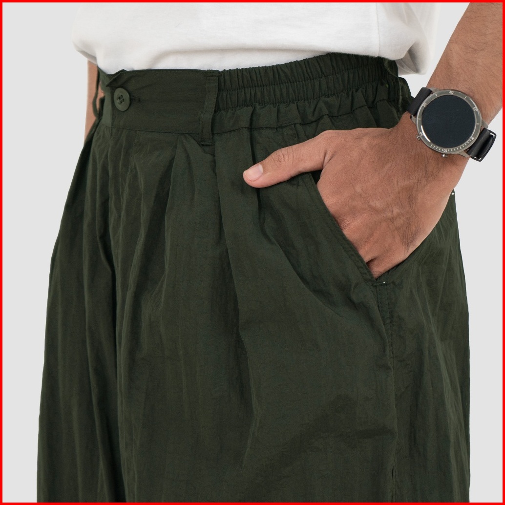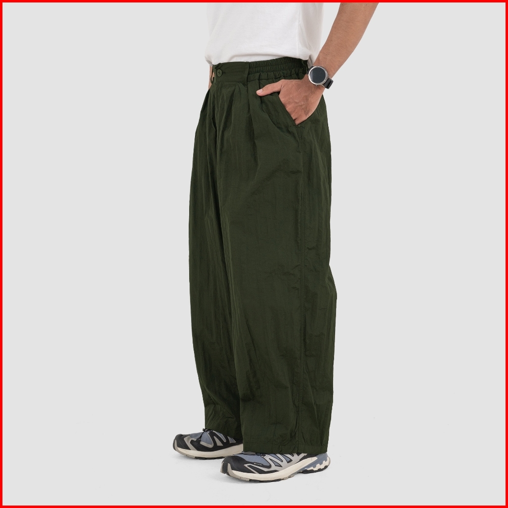 Fairgoods Celana Panjang Nylon Crinkle Baggy Baloon Pants Mizura Olive