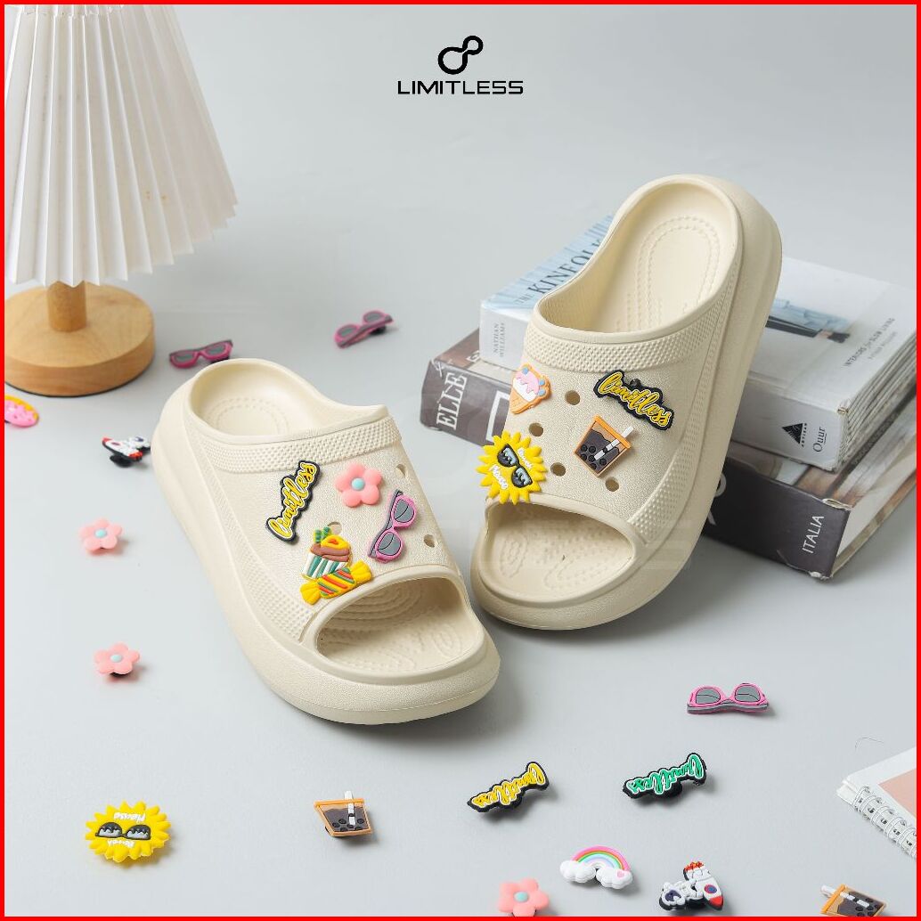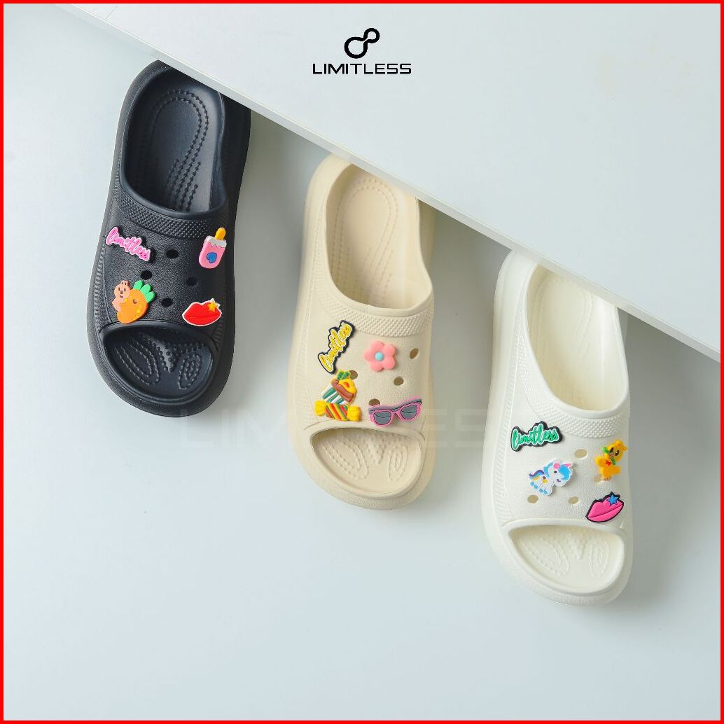 Limitless Free Aksesoris Sandal Selop Wanita Dewasa Shenina Stiker Wedges Terbaru 2025 Kekinian Sendal Slop Cewek Platfo
