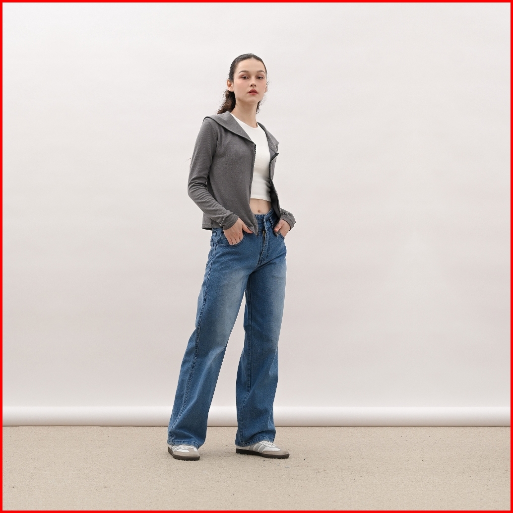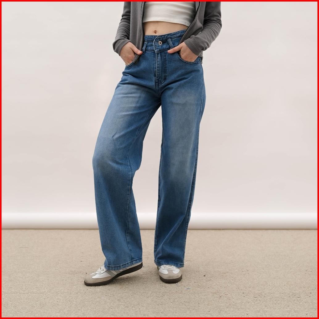 Fairgoods Jeans Wanita Hight Waist Straight Loose Forema Light Blue