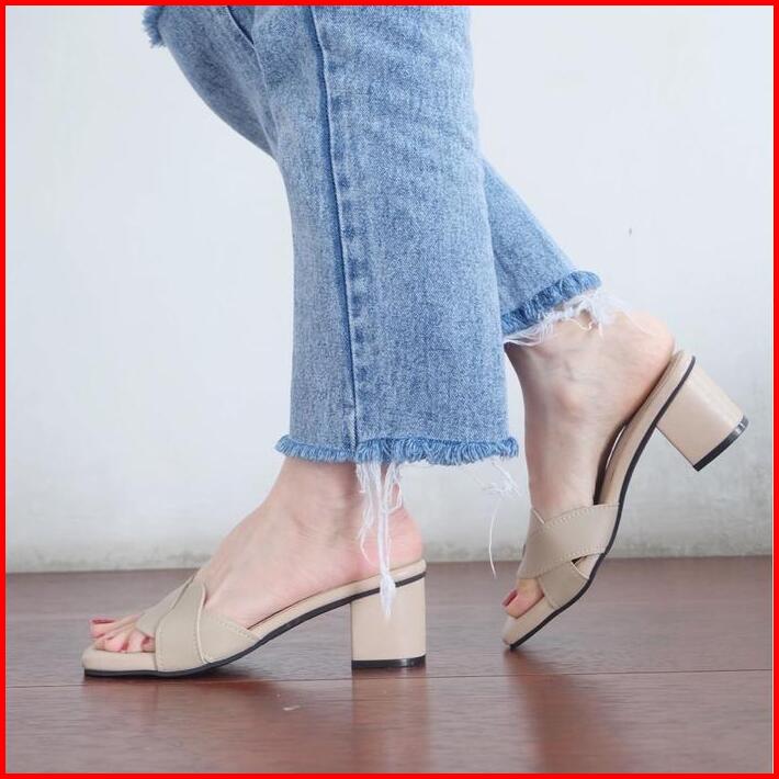 Crystal Sendal Wanita Heels Chunky 5cm Sandal