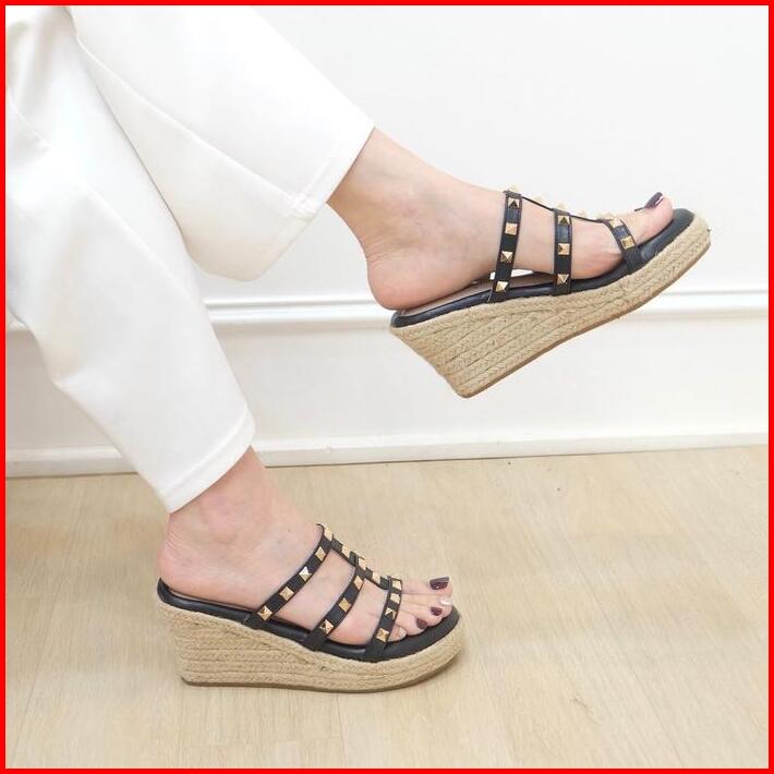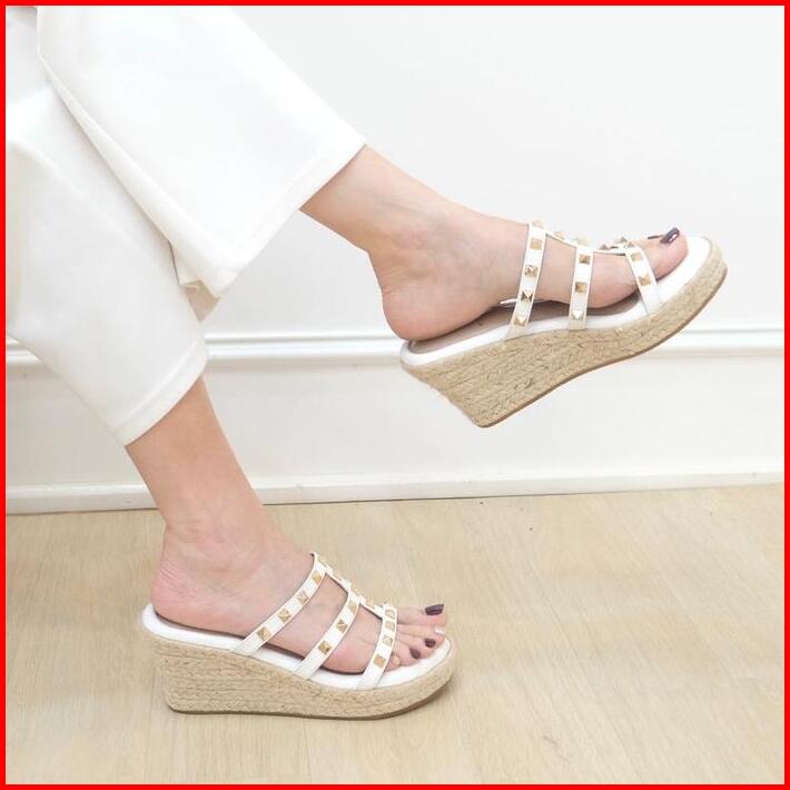 Samantha Sendal Wanita Wedges Stud Wanita Empuk Ringan Nyaman Sandal