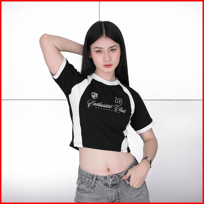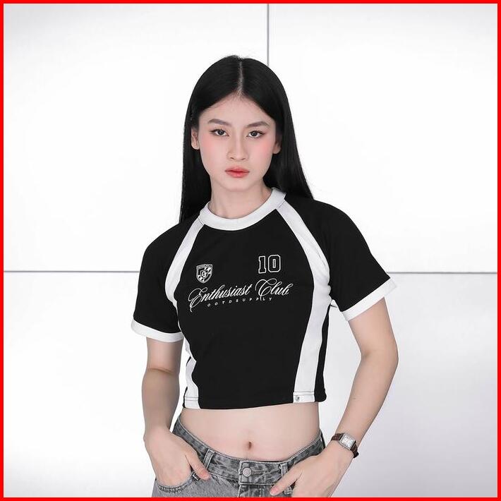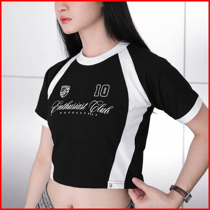 Ootdsupply Croptee Fit White Layer Force Ten Black L Tshirt Crop L Kaos Croptee Csf-wl001
