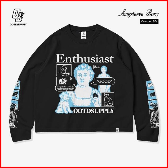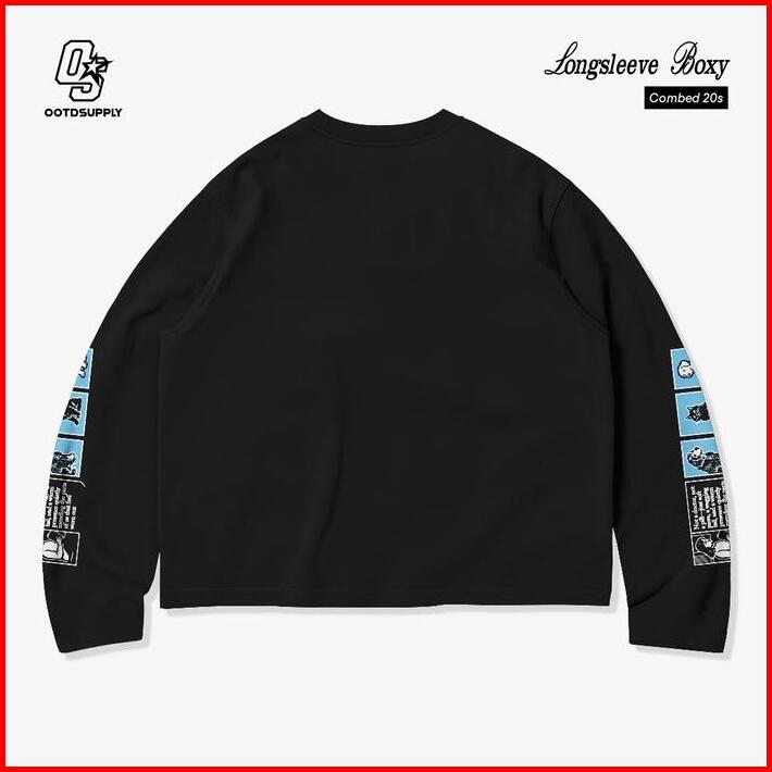Ootdsupply Longsleeve Boxy 20s Worn Out Black L Oversize T-shirt Lengan Panjang L Kaos Panjang I Atasan Unisex Ls-bx-003