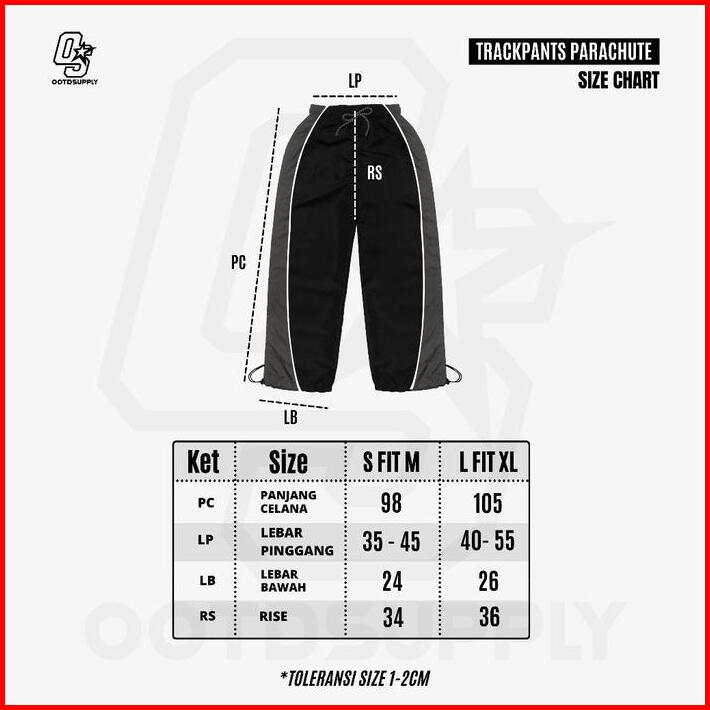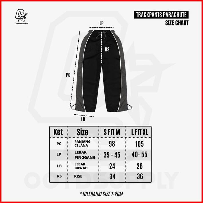 Ootdsupply Trackpant Parachute Circle Black Grey L Celana Panjang Parasut Longpants Sporty Unisex Trp-cln-bgry