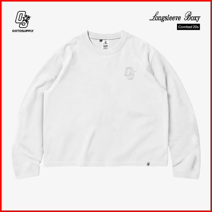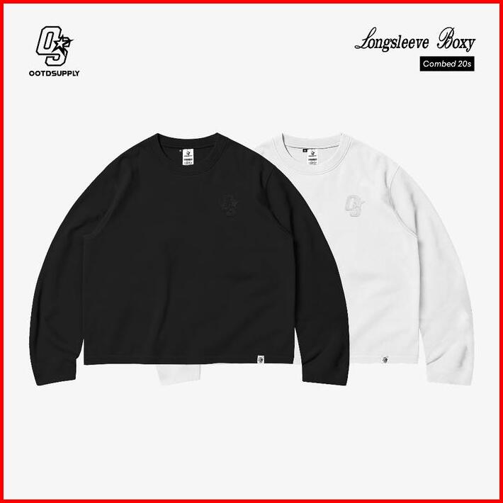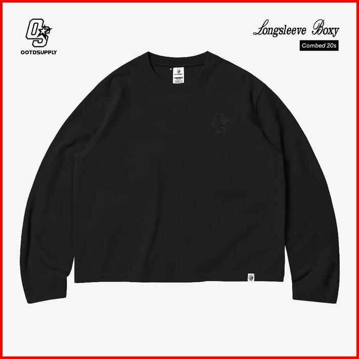 Ootdsupply Longsleeve Boxy 20s Os Sign Embroidery Black White L Oversize T-shirt Lengan Panjang L Kaos Panjang I Atasan