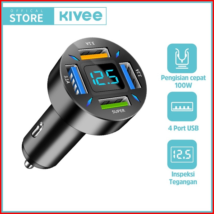 Hot Kivee Car Charger Mobil Usb Fast Charging 100w 4-in-1 For Iphone Xiaomi Samsung
