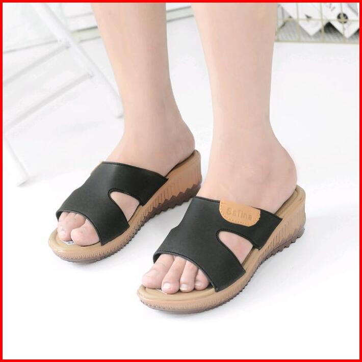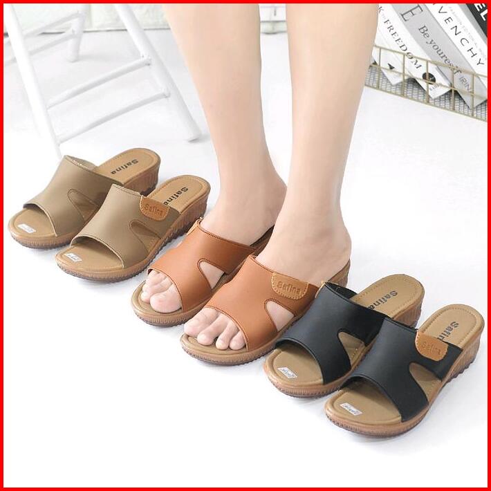 Sandal Wanita Wedges Sendal Cewek Selop Slop Tinggi Kondangan Kekinian Terbaru Ibu Murah Terlaris Js02