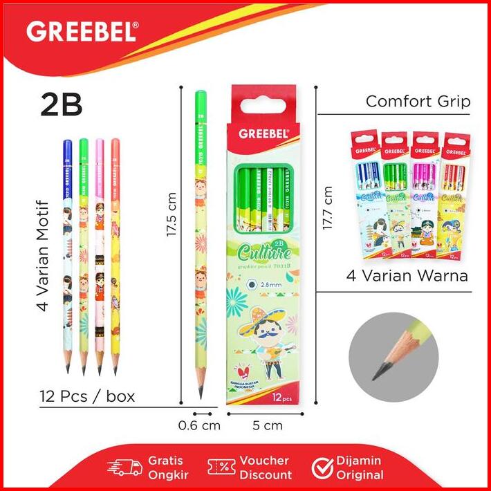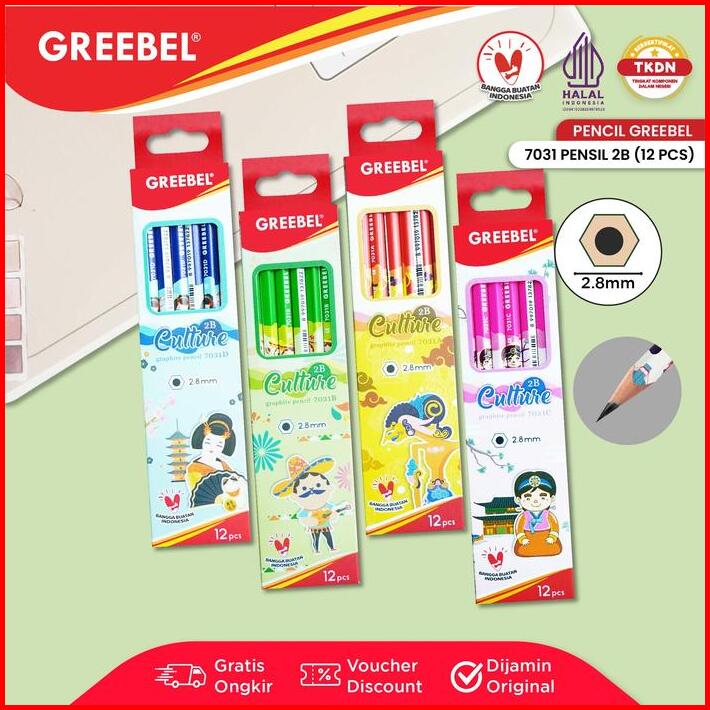 Greebel Pensil Kayu 2b 7031 Culture 12pcs Set Pensil Tulis Grafit Graphite Pensil Ujian Sekolah Pensil Gambar