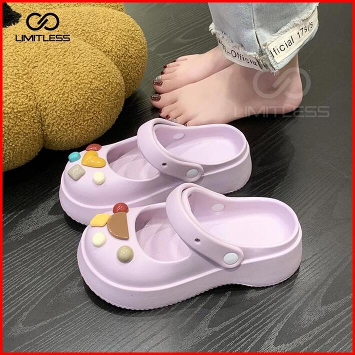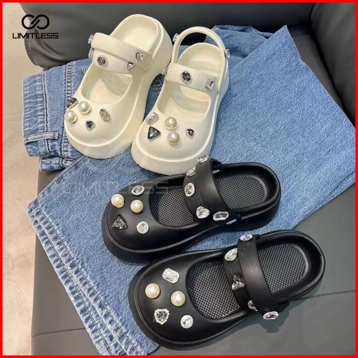 Limitless Sendal Wanita Dewasa Inara Model Permata Slip On Terbaru 2024 Sandal Selop Cewek Korea Platform Eva Anti Slip