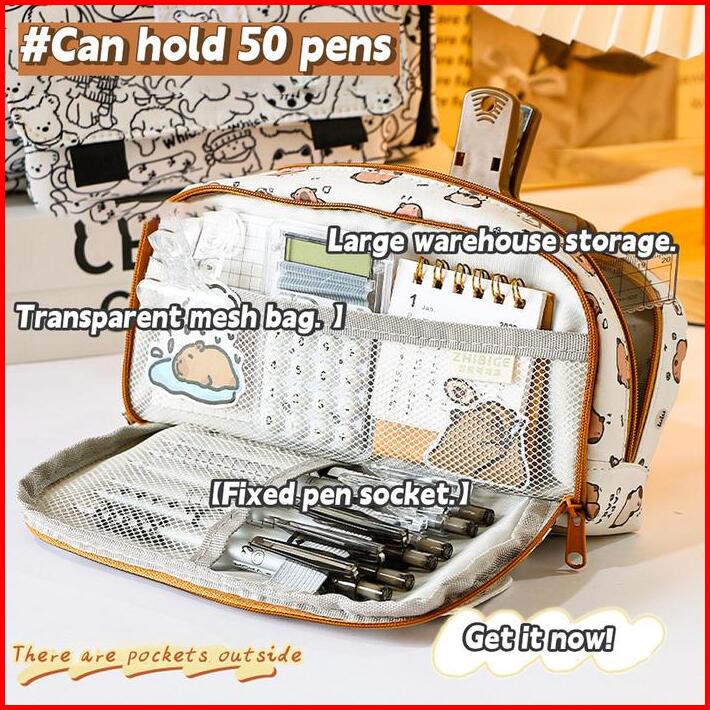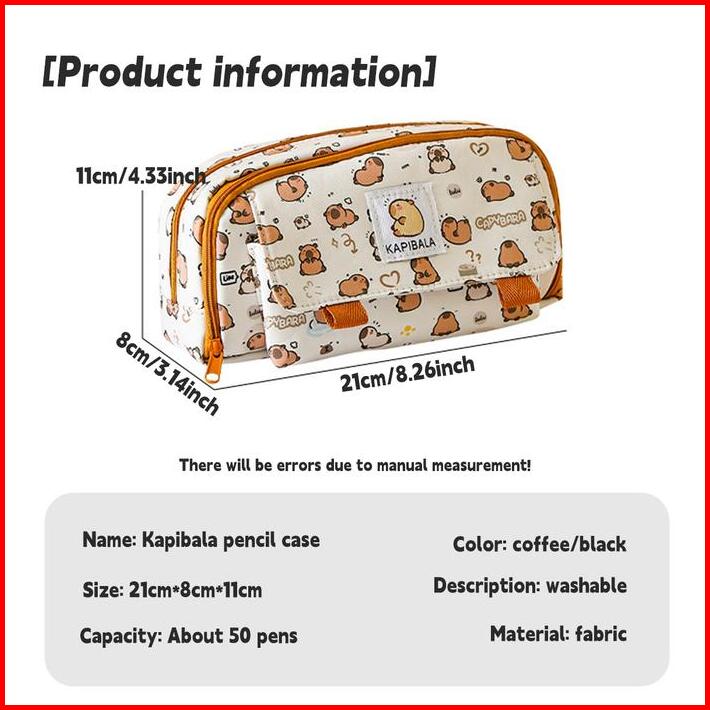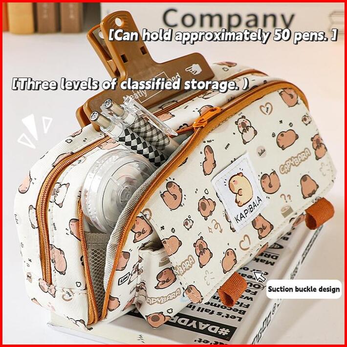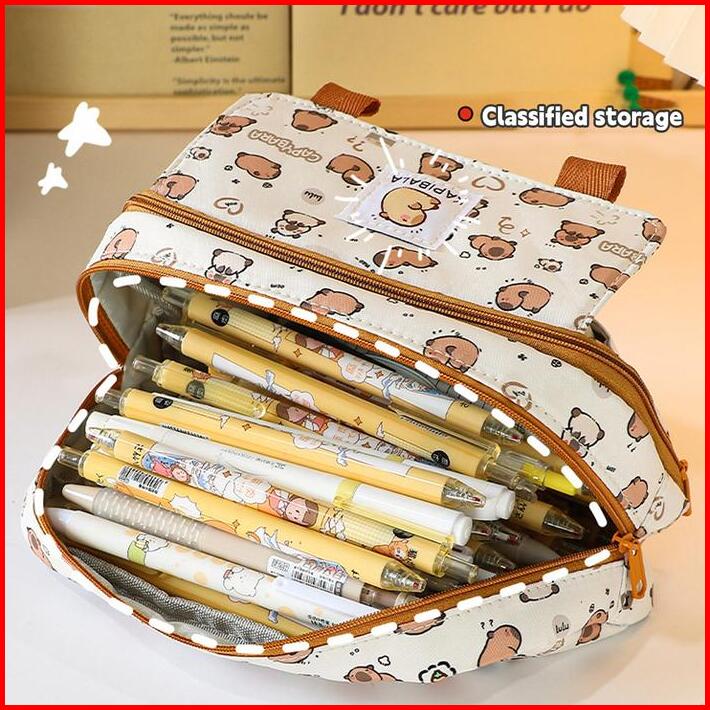 Dotding 5 Layers Canvas Pencil Case Kawaii Large Capacity Stationery Box Capybara Pattern Multifunctional Cute Boy Stati