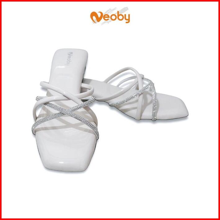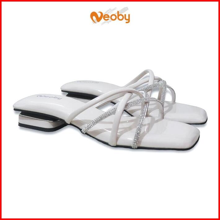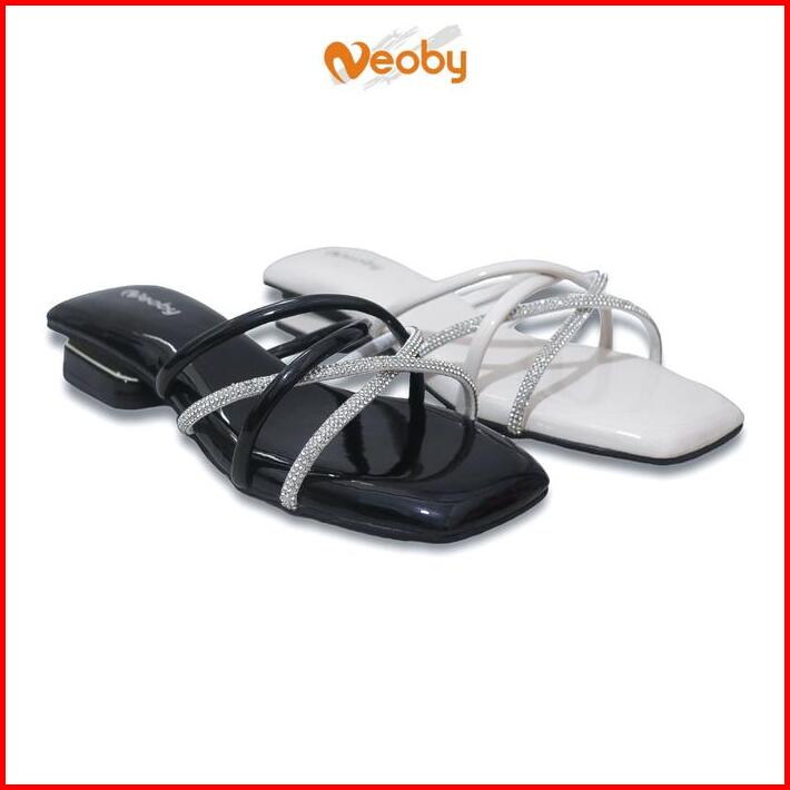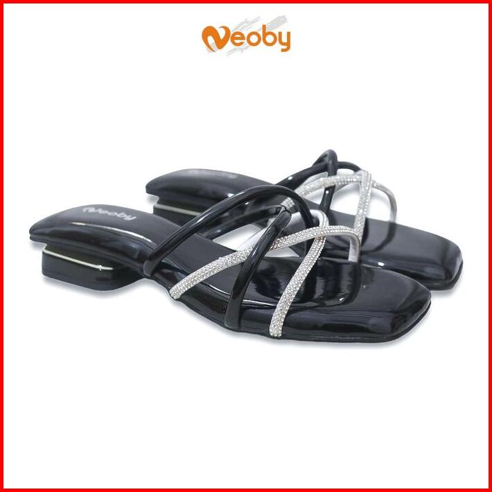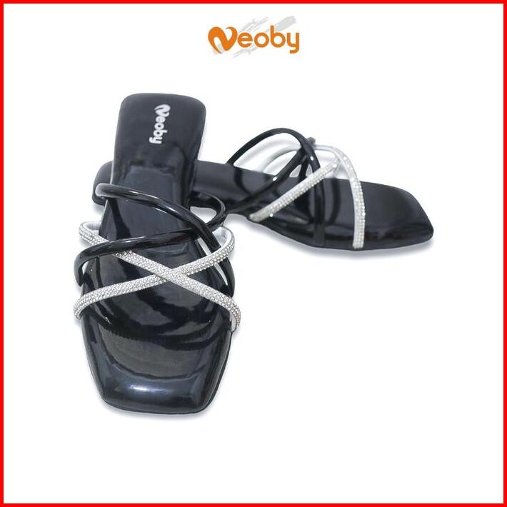 Neoby Rachel Heels Wanita 3cm Bling Gliter Mewah Glossy Sandal Cewek Perempuan Sendal Flat Hitam