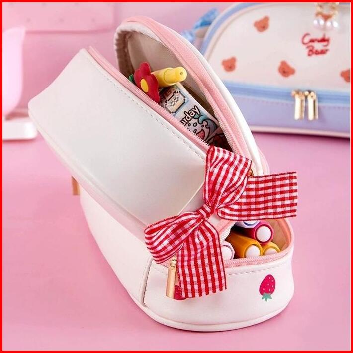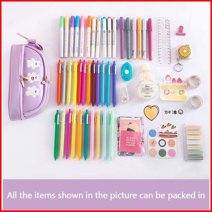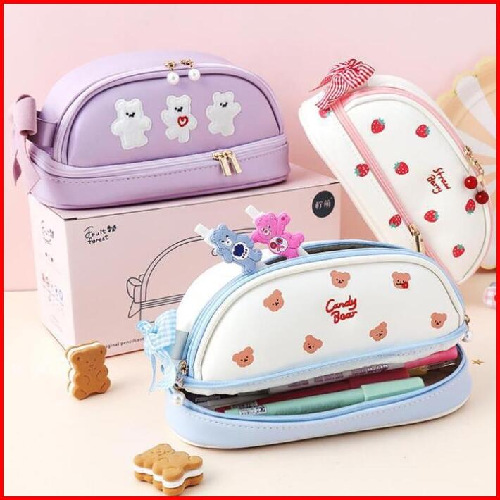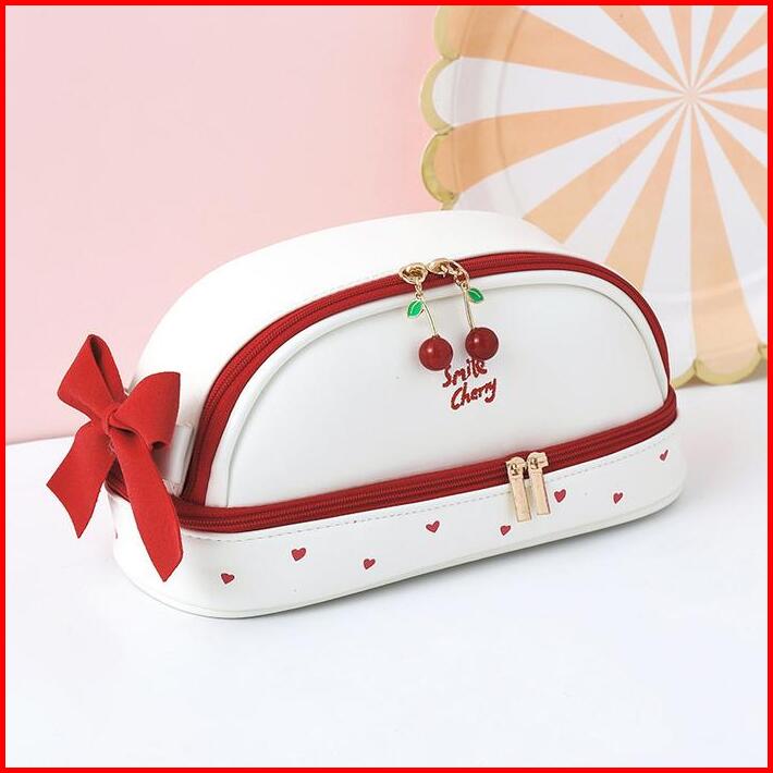 Large Capacity Pencil Case For Girls Kawaii Ins Style Double-layer Pu Waterproof Back To School Supplies Stationery Stor
