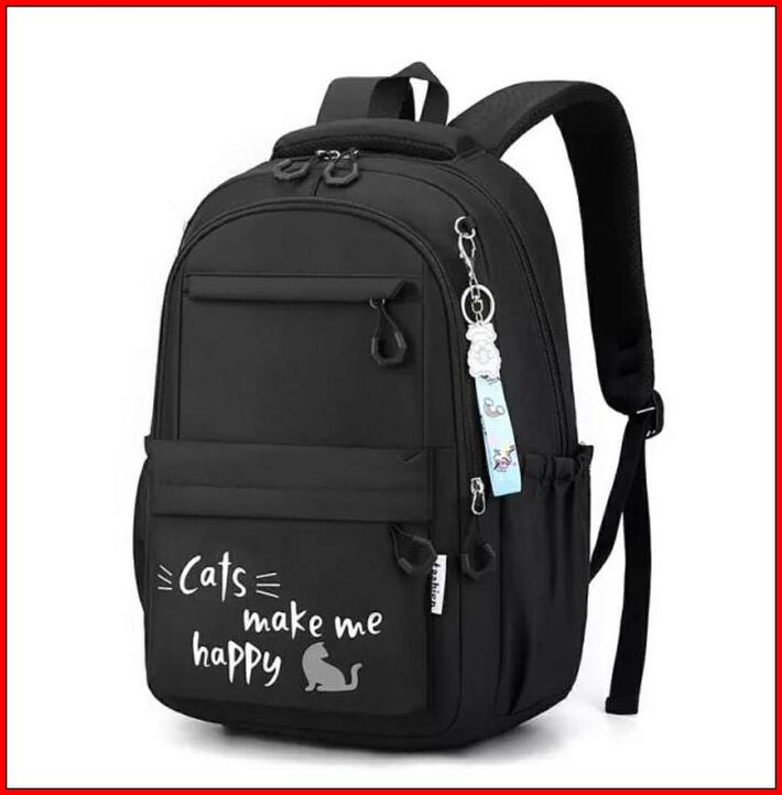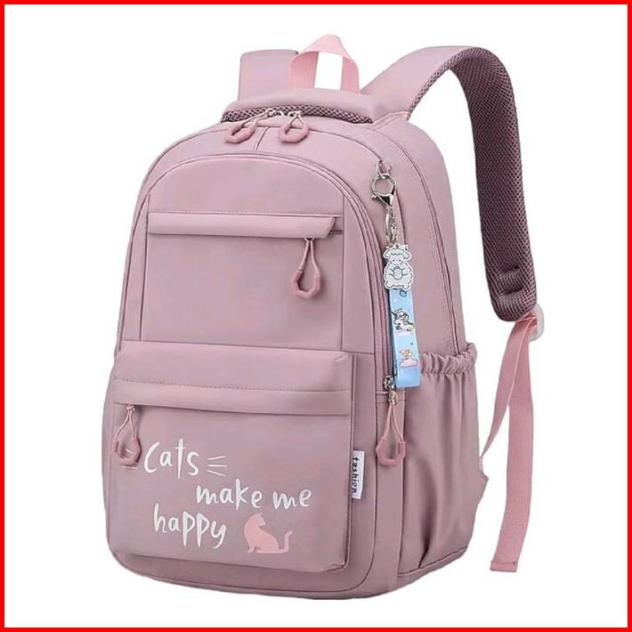 Tas Ransel Wanita Cats Tas Backpack G0009 Kanvas Hitam Pink Sekolah Cewek Fashion