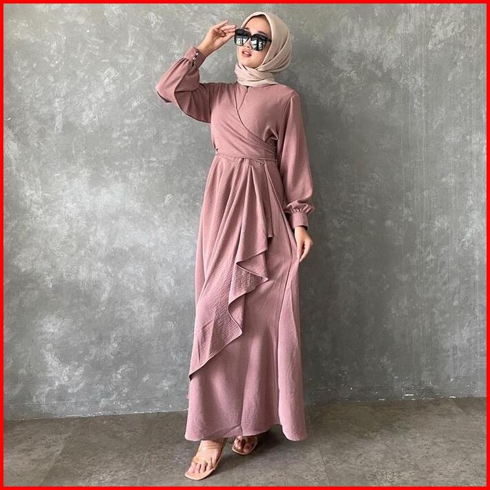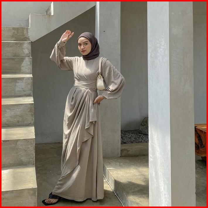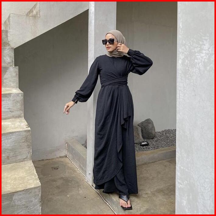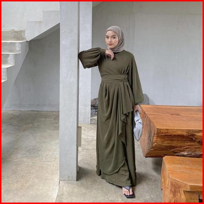 Terbaru Sada Dress Cringkle Airflow Gamis Wanita Hitam Army Hijau