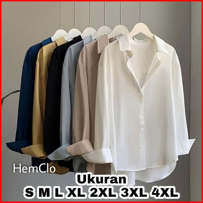 Hemclo Kemeja Polos Wanita Big Size Kemeja Basic Atasan Wanita Terbaru