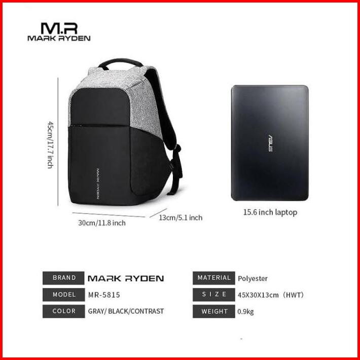 Mark Ryden Mr5815 Original Tas Ransel Laptop Backpack Anti Maling