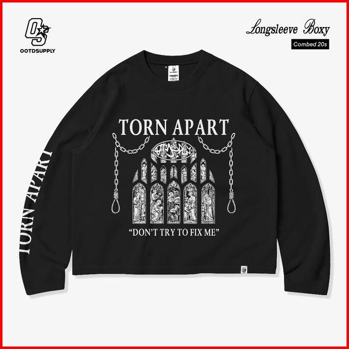 Ootdsupply Longsleeve Boxy 20s Torn Apart Black L Oversize T-shirt Lengan Panjang L Kaos Panjang I Atasan Unisex Ls-bx-0