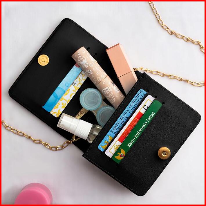 Dompet Wanita Pvc 2 Ruang Dengan 6 Slot Kartu Dan Tali Selempang Rantai