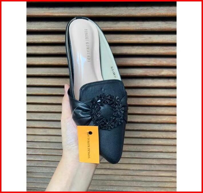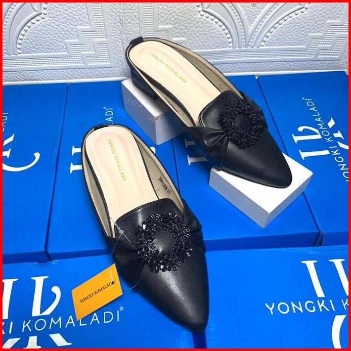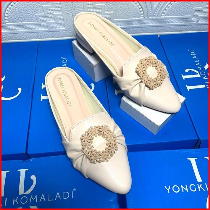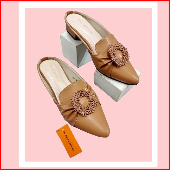 Sendal Wanita Slip-on Fladeo Hak 3 Cm Bunga Shoes