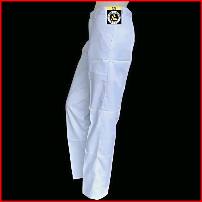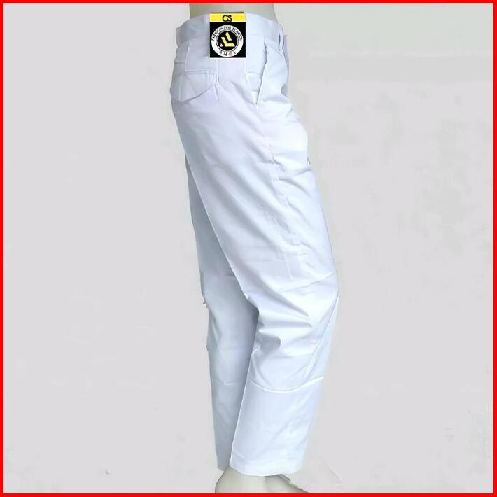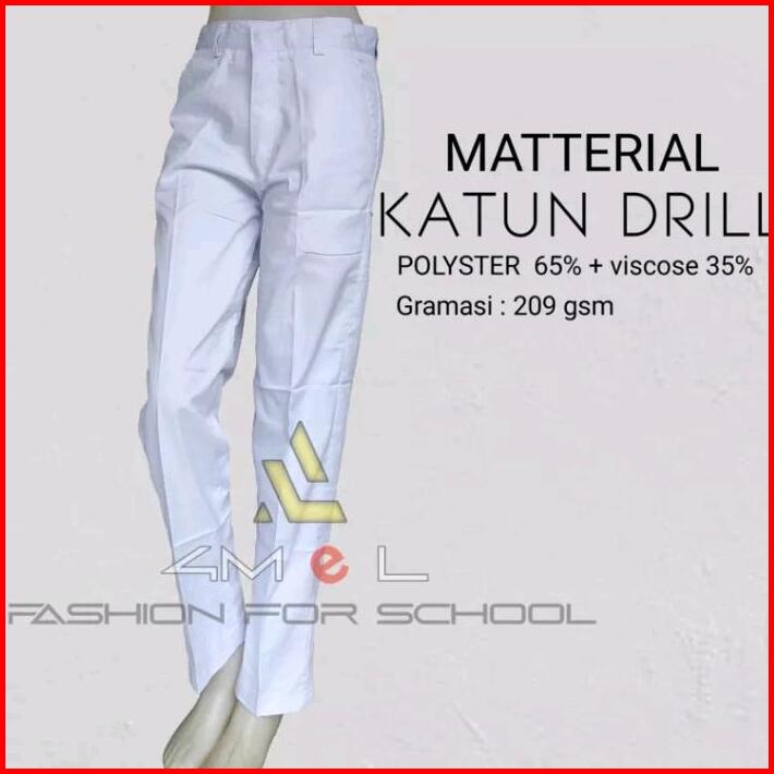 Celana Panjang Putih Seragam Sekolah Smp Sma Amel Uniform Kain Katun Drill Tebal Pria Formal Kantor Kerja Slim Fit Bawah