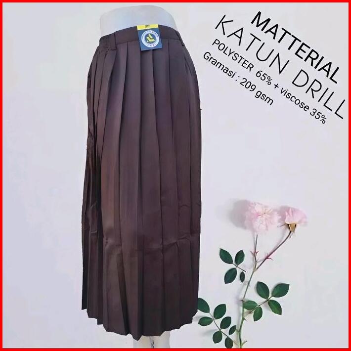 Rok Pramuka Panjang Rempel Full Seragam Sekolah Sd Amel Uniform Kain High Twiss Dan Katun Drill Cokelat Fashion Anak Per