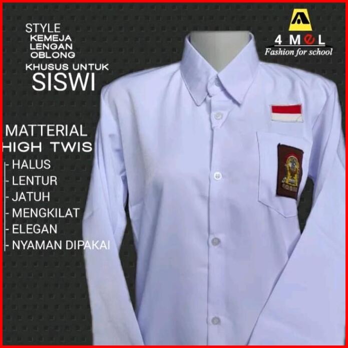 Baju Kemeja Putih Sma Lengan Panjang Oblong Amel Uniform Seragam Sekolah Kain High Twiss Atau Balestra Licin Elemen