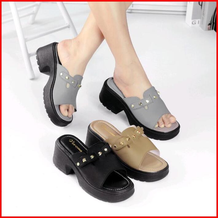Sandal Wanita Wedges Sendal Cewek Selop Slop Tinggi Kondangan Kekinian Terbaru Murah Ibu Terlaris Spl