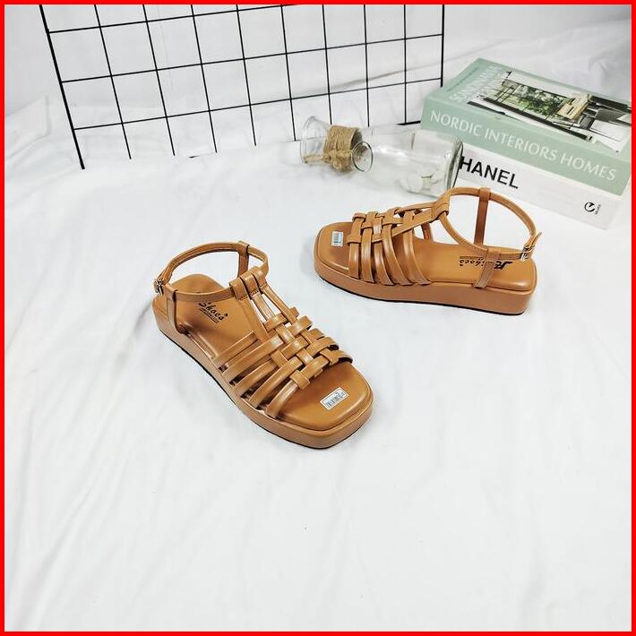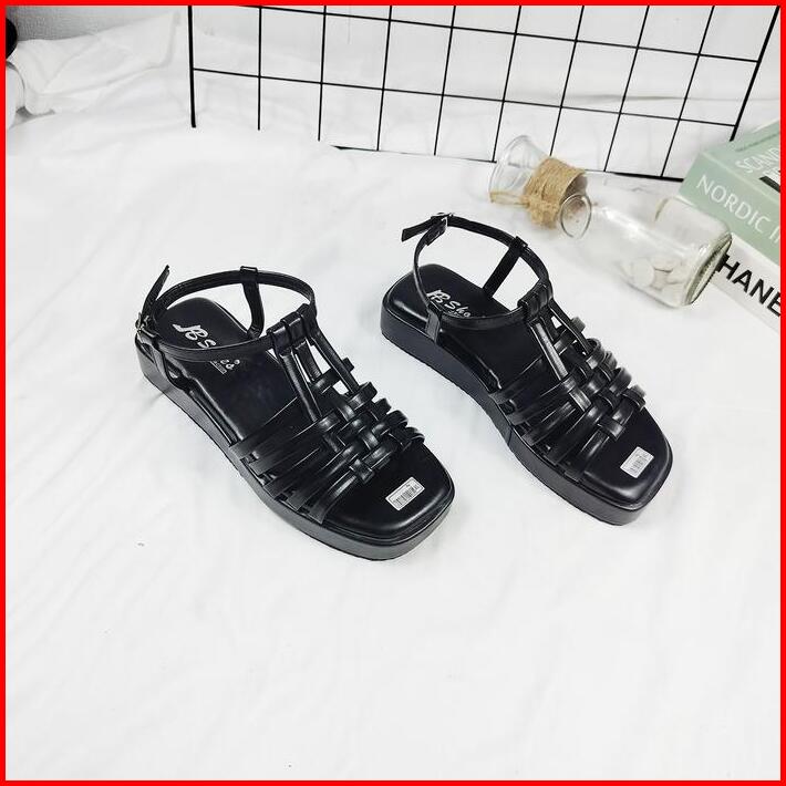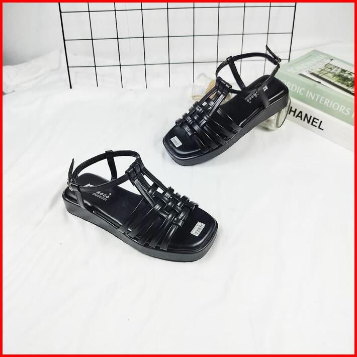 Wedges Wanita Sandal Wanita Kekinian Tali Anyam Hitam Putih
