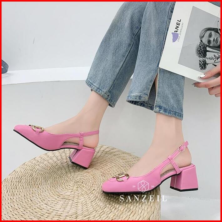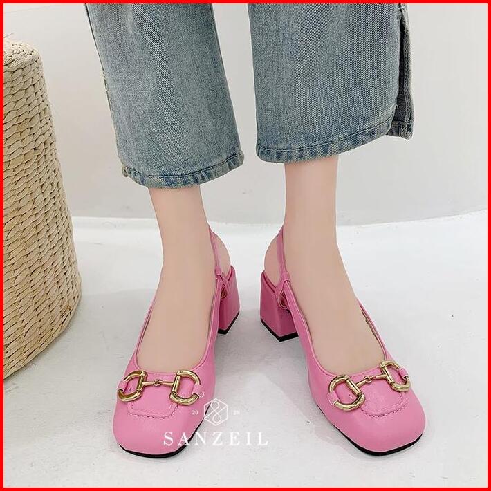 Sanzeil Horsebit Hak Tahu Dengan Tali Belakang Pink