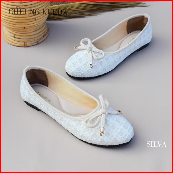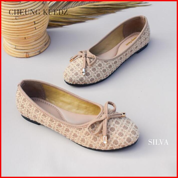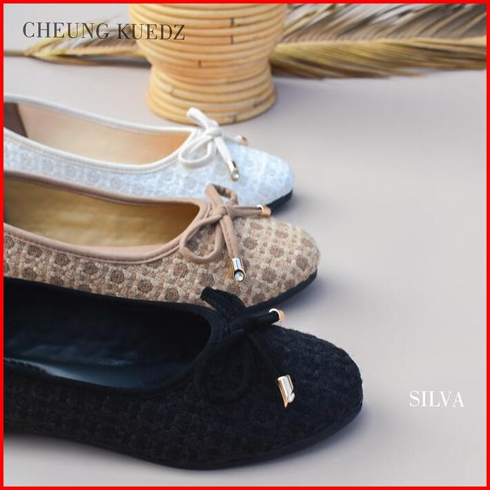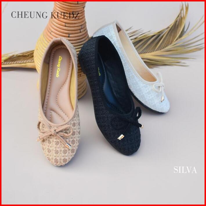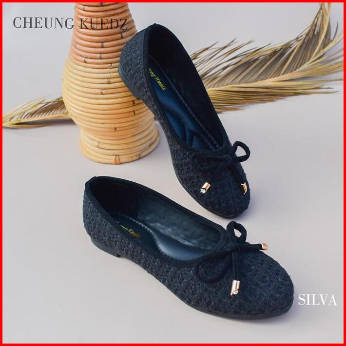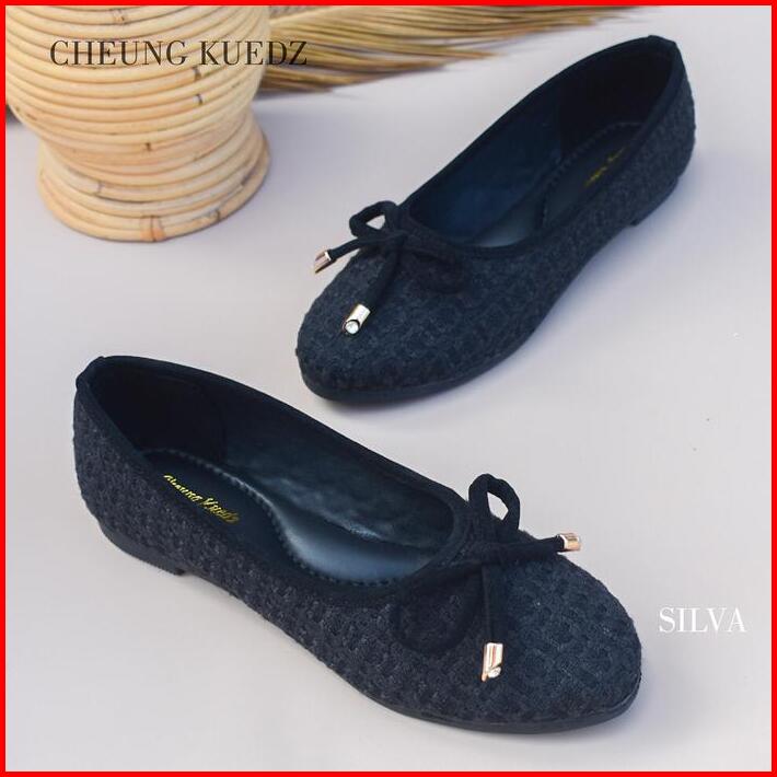 Cheung Kuedz Silva Turun 1 Size Flatshoes Round Toe Canvas Wanita Pola Size Besar Sol Karet