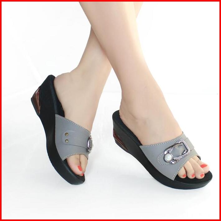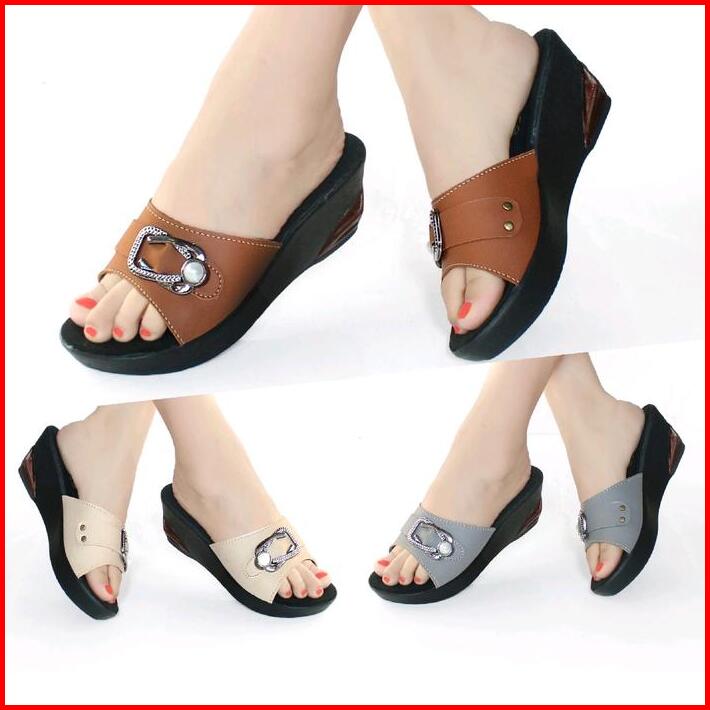 Sandal Wanita Wedges Sendal Perempuan Selop Slop Tinggi Hak Pesta Kondangan Kekinian Terbaru High Heels Ibu Ibu Cewek Ka