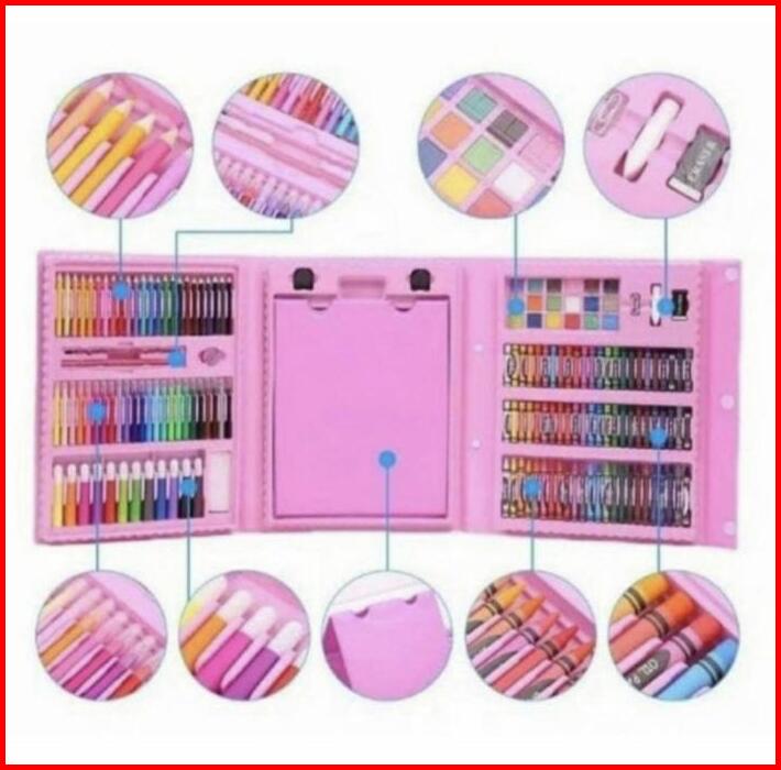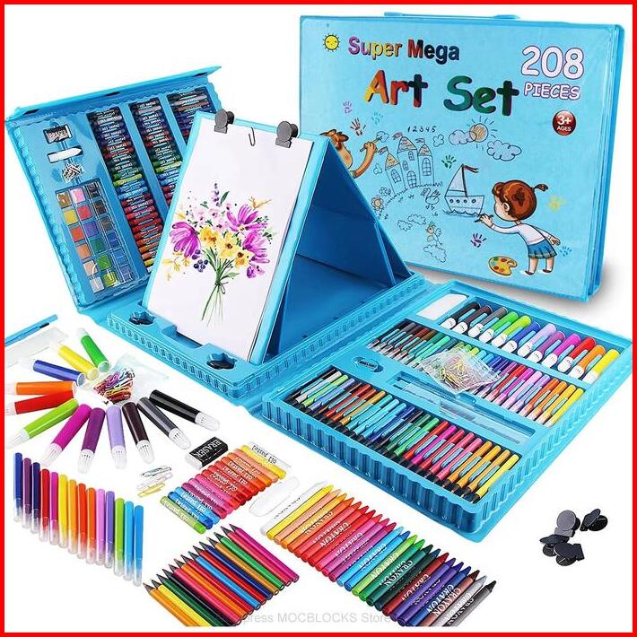 Super Mega Art Set Alat Gambar Tulis Anak Crayon Pensil Warna 208 Pcs