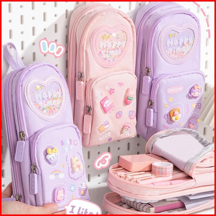 Dotding Tempat Pensil Kotak 3d Anak Perempuan Lucu Besar Kotak Pensil Kanvas 6 Ruang Kotak Pensil Anak Sekolah Tempat Pe