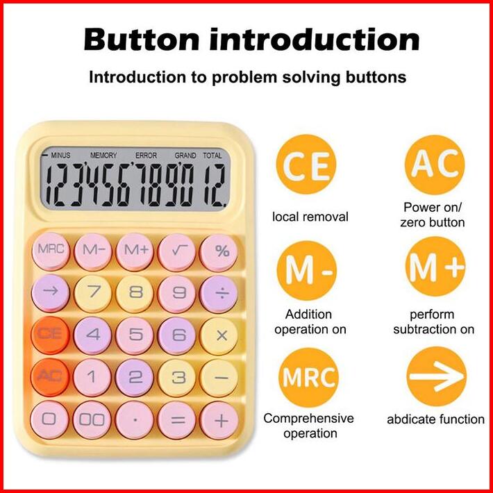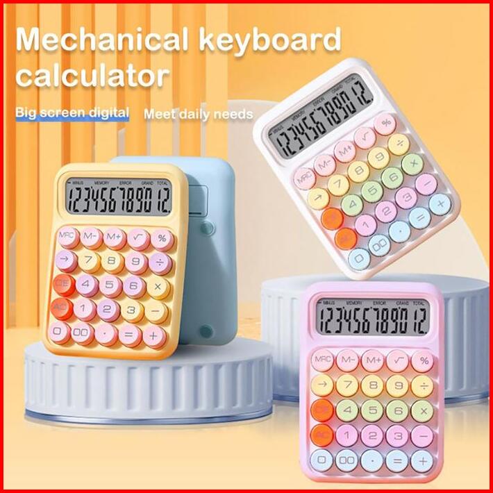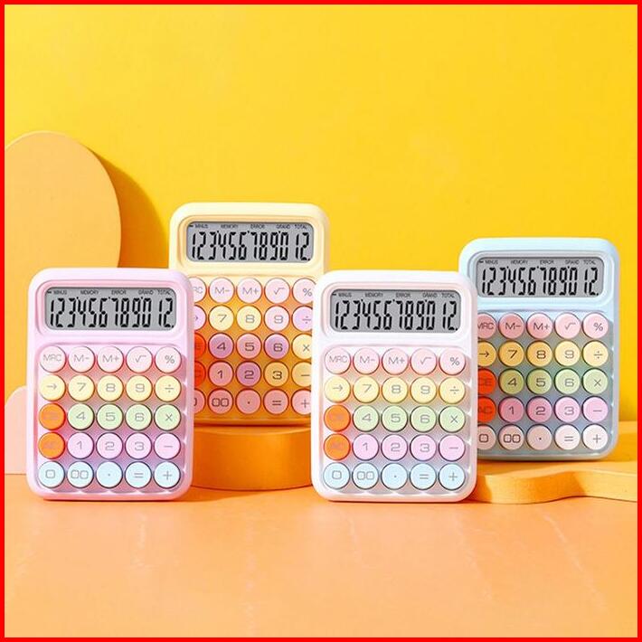 Dotding Kawaii Korea Dopamin Kalkulator Warna 12digis Display Besar Keyboard Dot Mekanik Tombol Besar Alat Tulis Sekolah