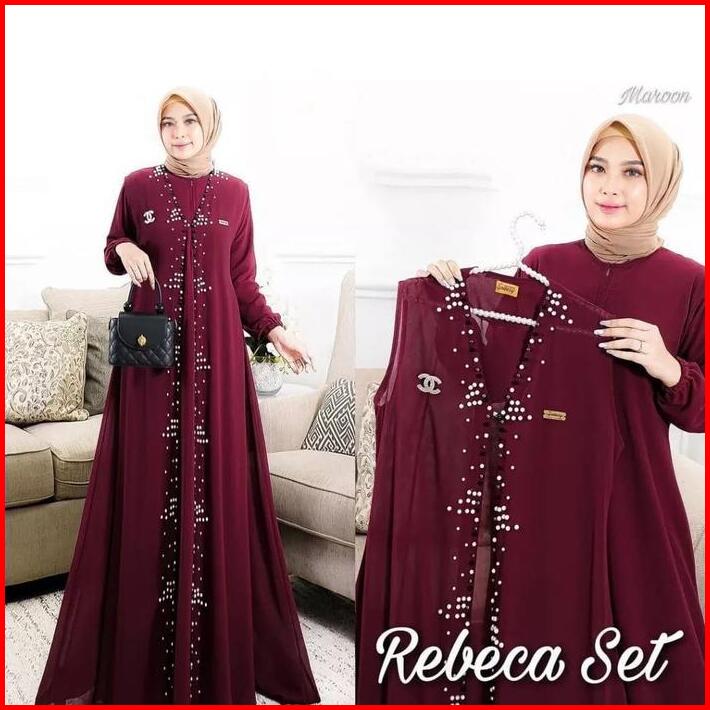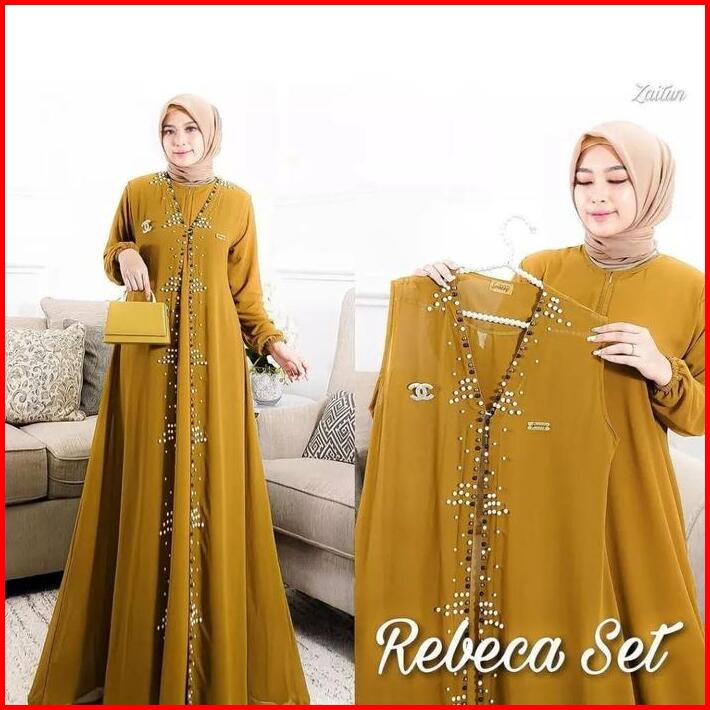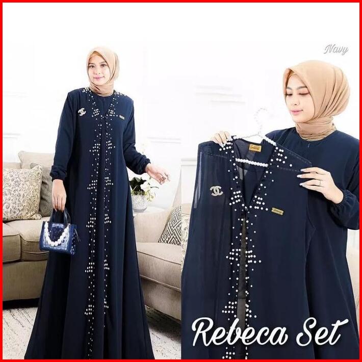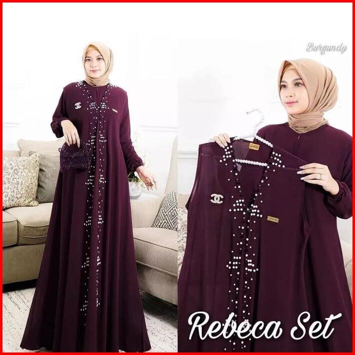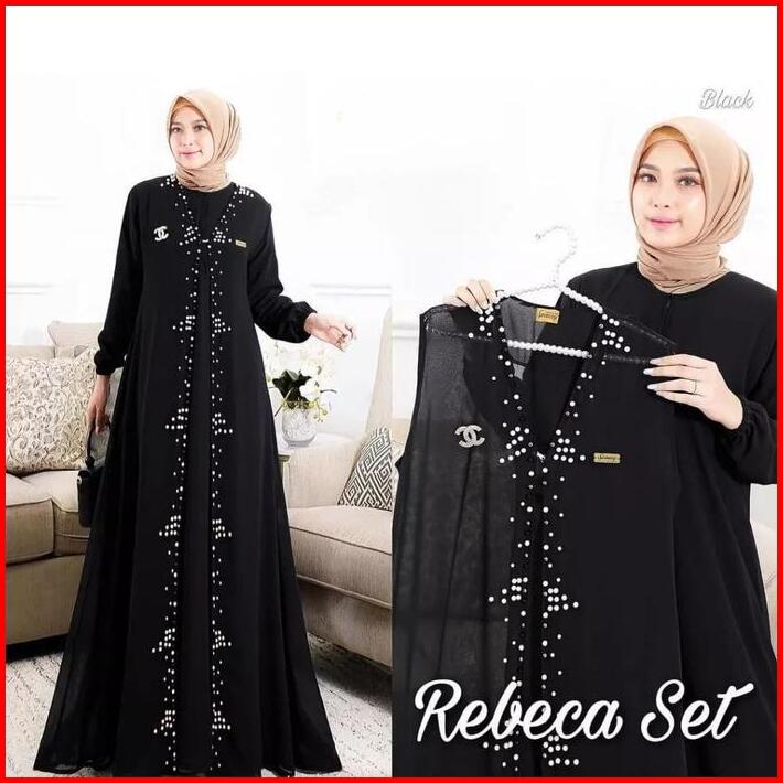Gamis Ceruty Babydoll Set Outer Aplikasi Mutiara Rebeca Set