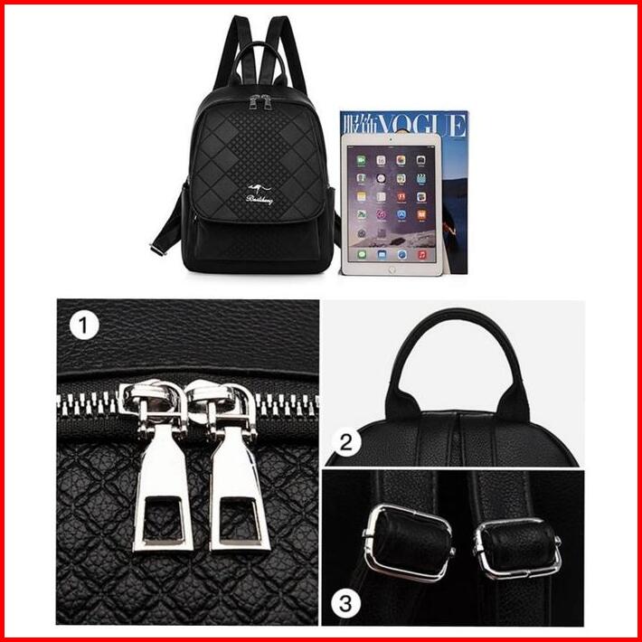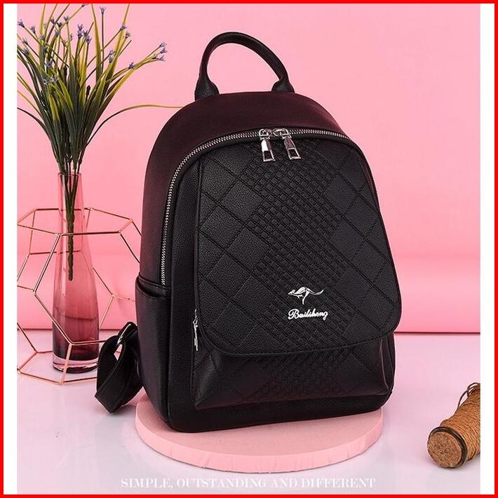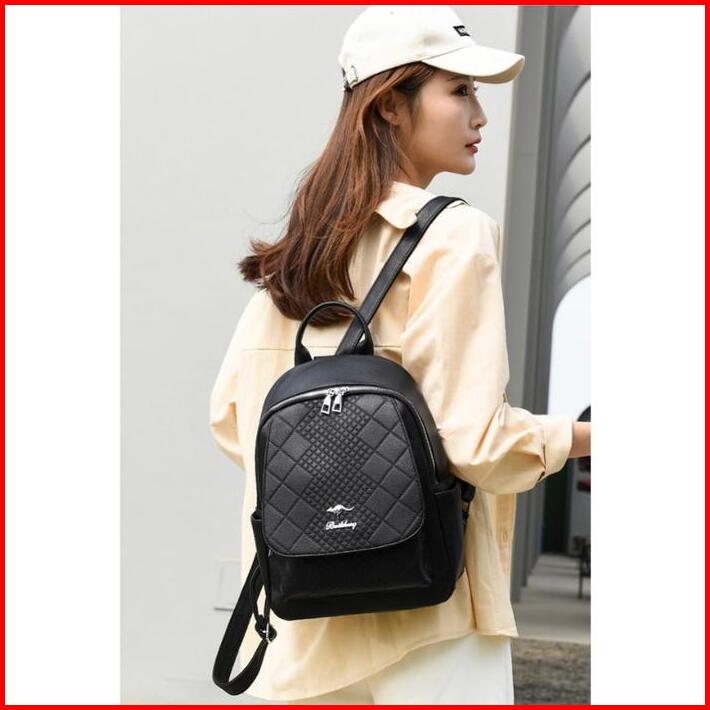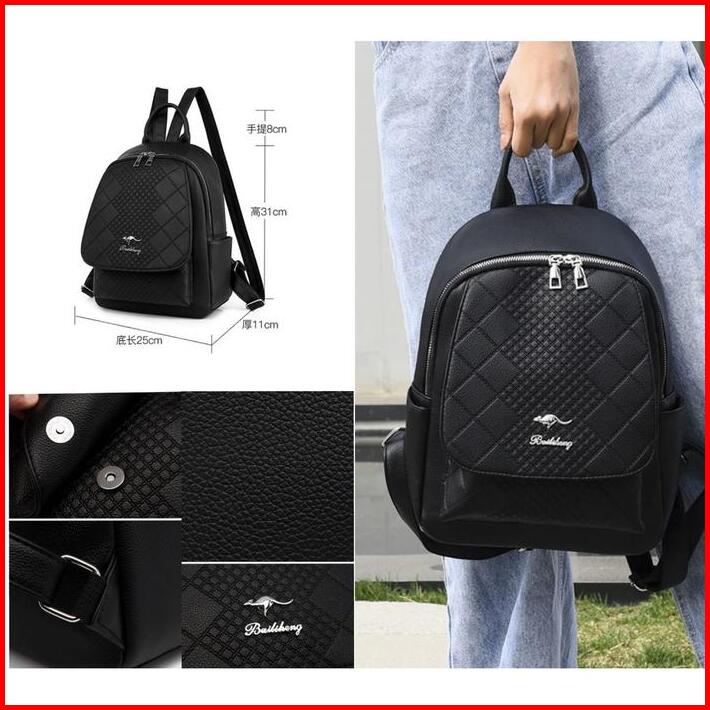 Tas Ransel Wanita Leurena Punggung Tas Backpack Kulit Hitam Ta369b5