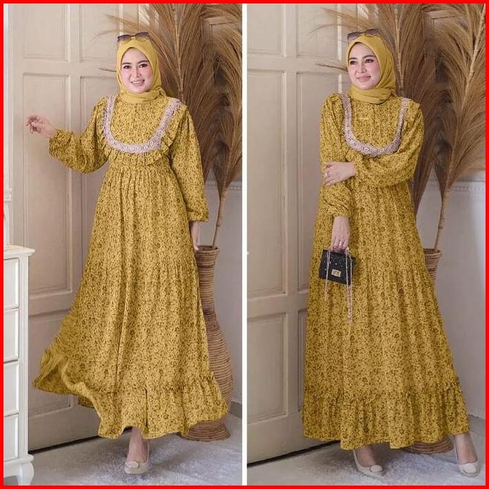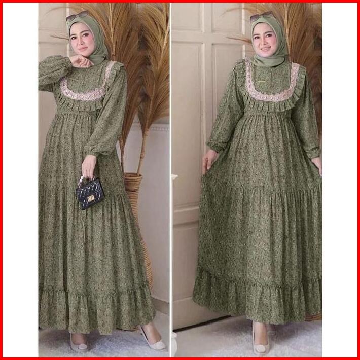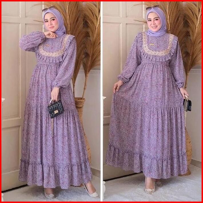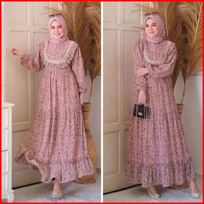 Gamis Ceruty Babydoll Renda Bermotif Bunga Full Puring Sakura Dress