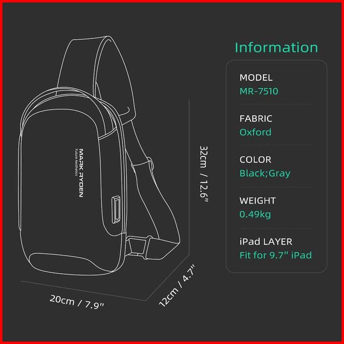 Tas Selempang Mark Ryden Mr7510 Original Sling Bag Anti Maling Tsa Usb