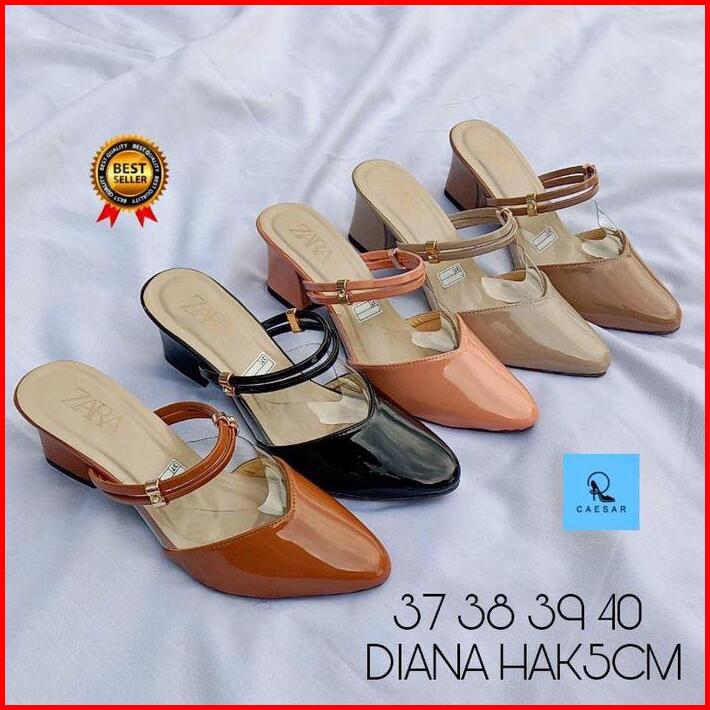 Sandal Selop Pesta Heels Mewah Wanita Mules Hak 5cm Terbaru Trendy