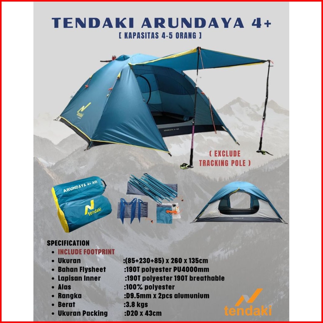 Tendaki Tenda Camping Arundaya 4 Air Kap 4 - 5 Plus Footprint