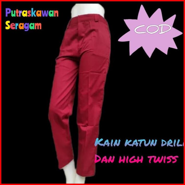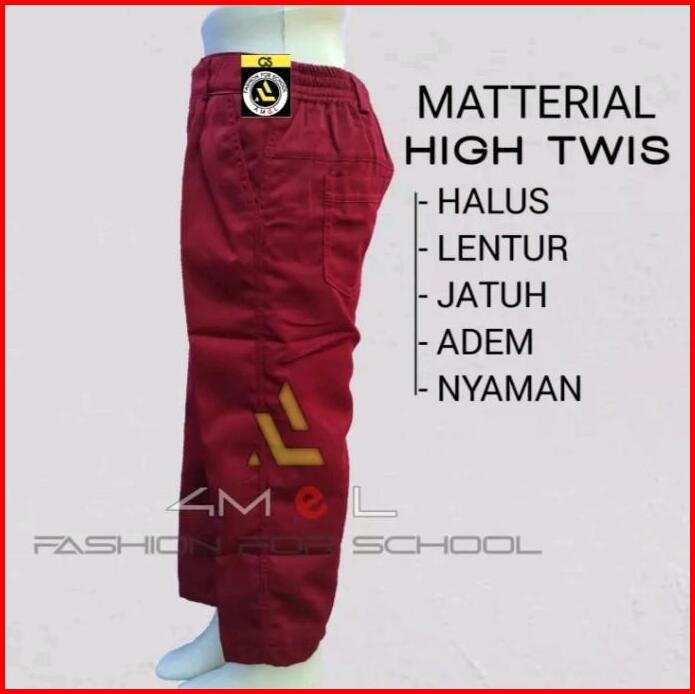 Celana Panjang Merah Seragam Sekolah Sd Laki Laki Amel Uniform Kain High Twiss Dan Katun Drill Lembut Nyaman Tebal Pakai