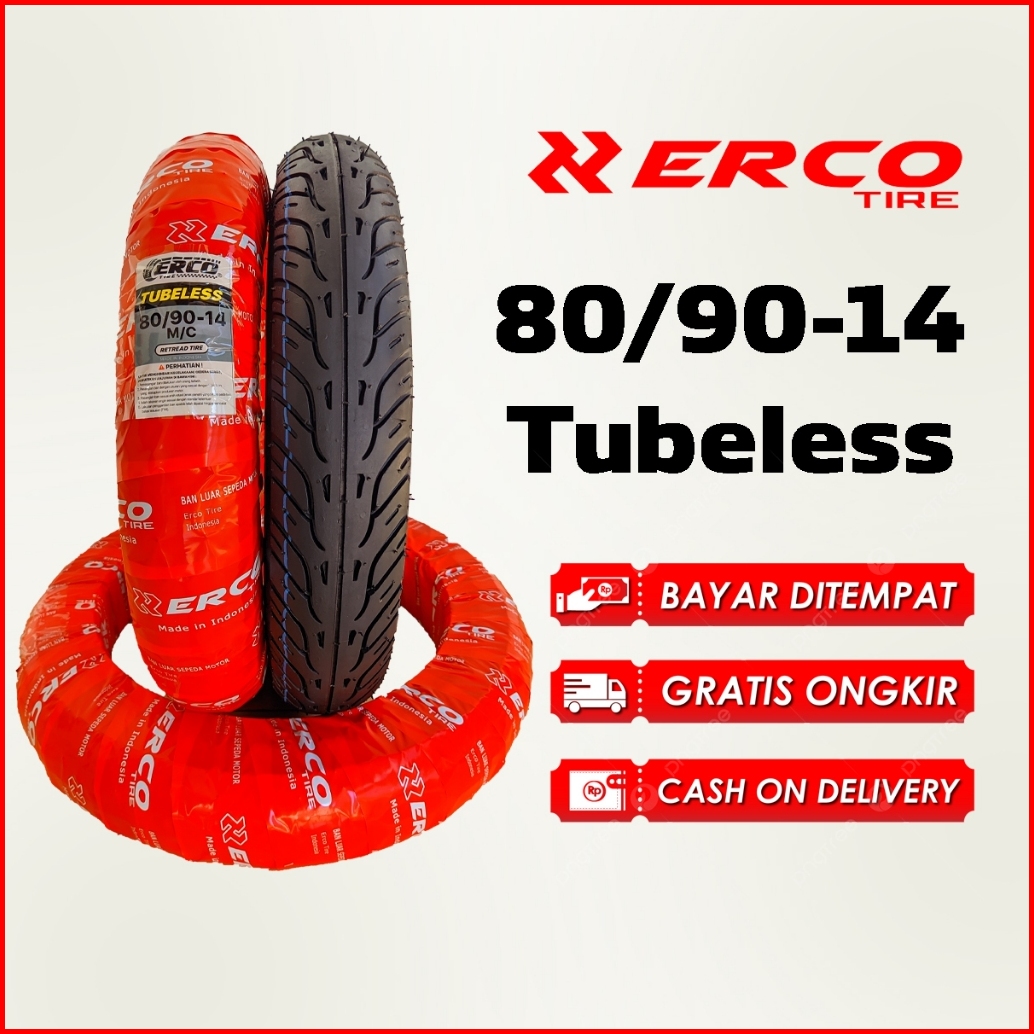 Erco Tire Ban Luar Motor Matic Depan Belakang Tubeless Nontubeless Ukuran 90 90-14 Dan 80 90-14