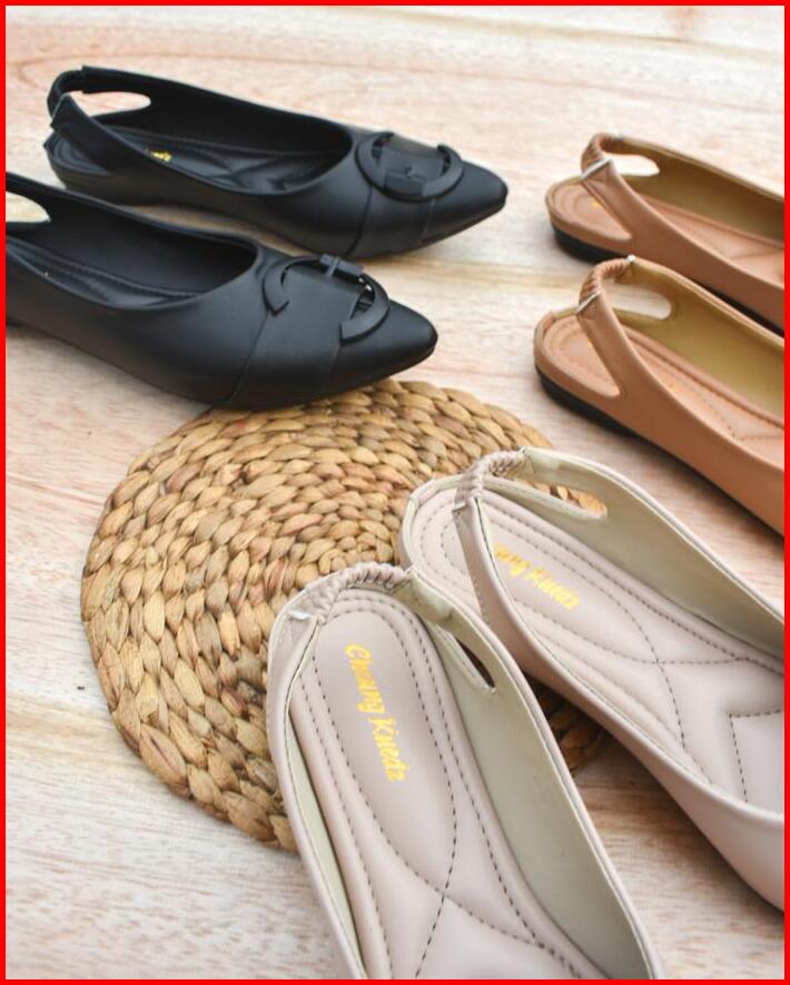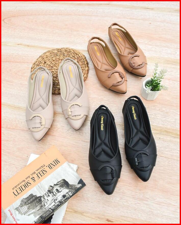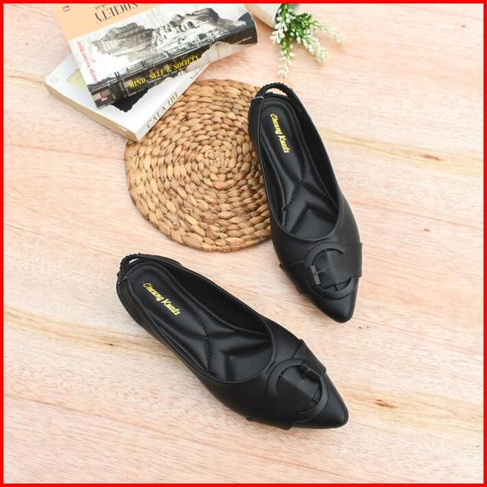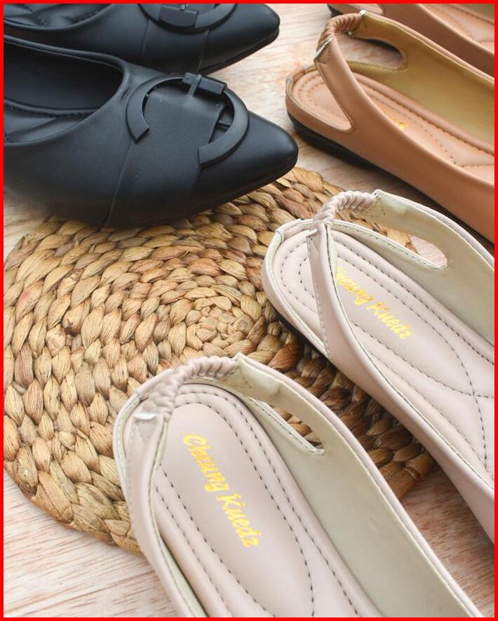 Cheung Kuedz Clea Flastshoes Wanita Tali Karet Belakang Sendal Flat Shoes