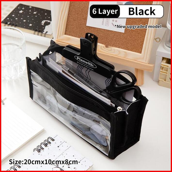 4 6 Layers Transparent Large Capacity Pencil Case Bag Pen Pouch Pvc Waterproof Organizer Durable Holder Soft Touch For S