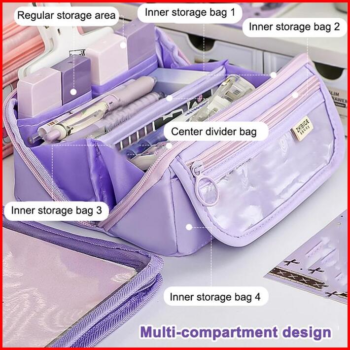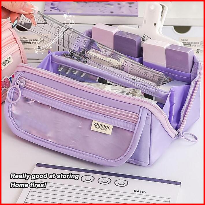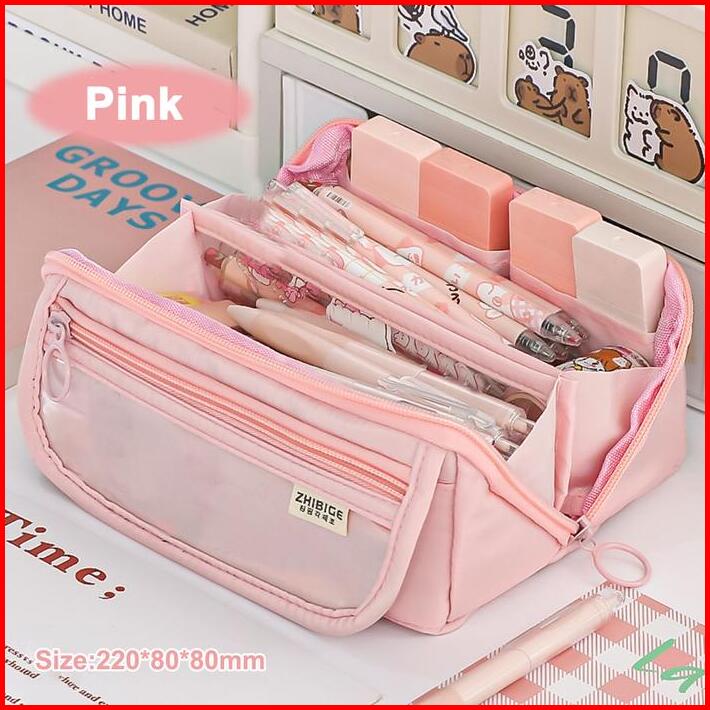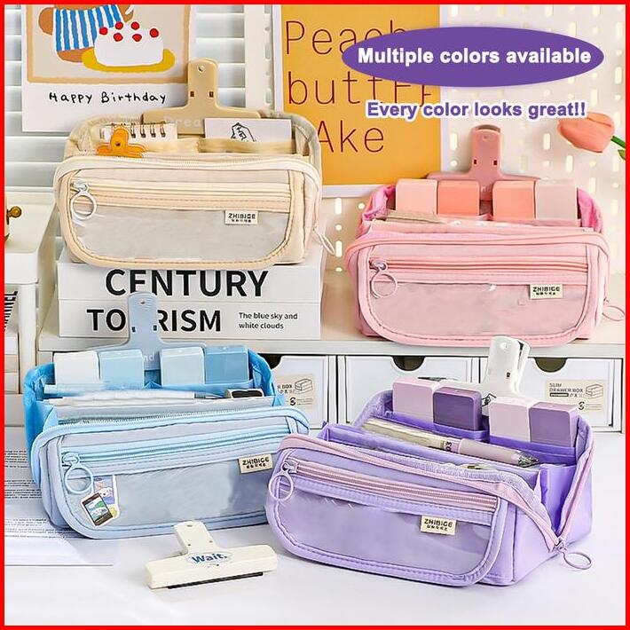 Dotding Pencil Case Transparent Front Pocket Pen Pouch Large Capacity Bag Box For Students Boys Girls School Stationery