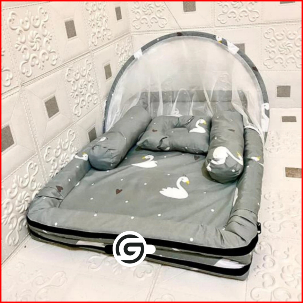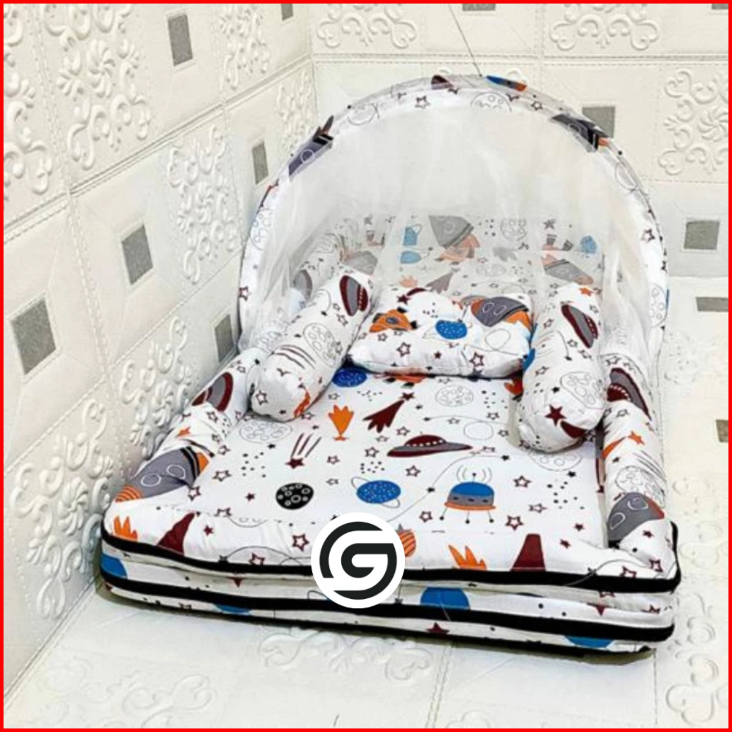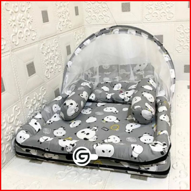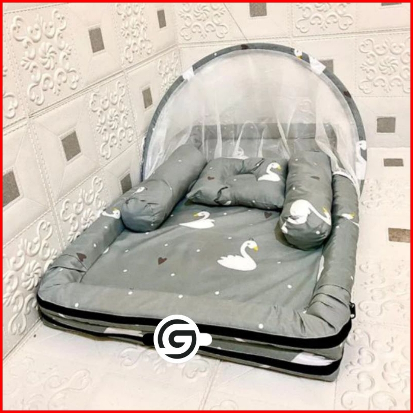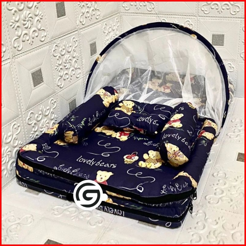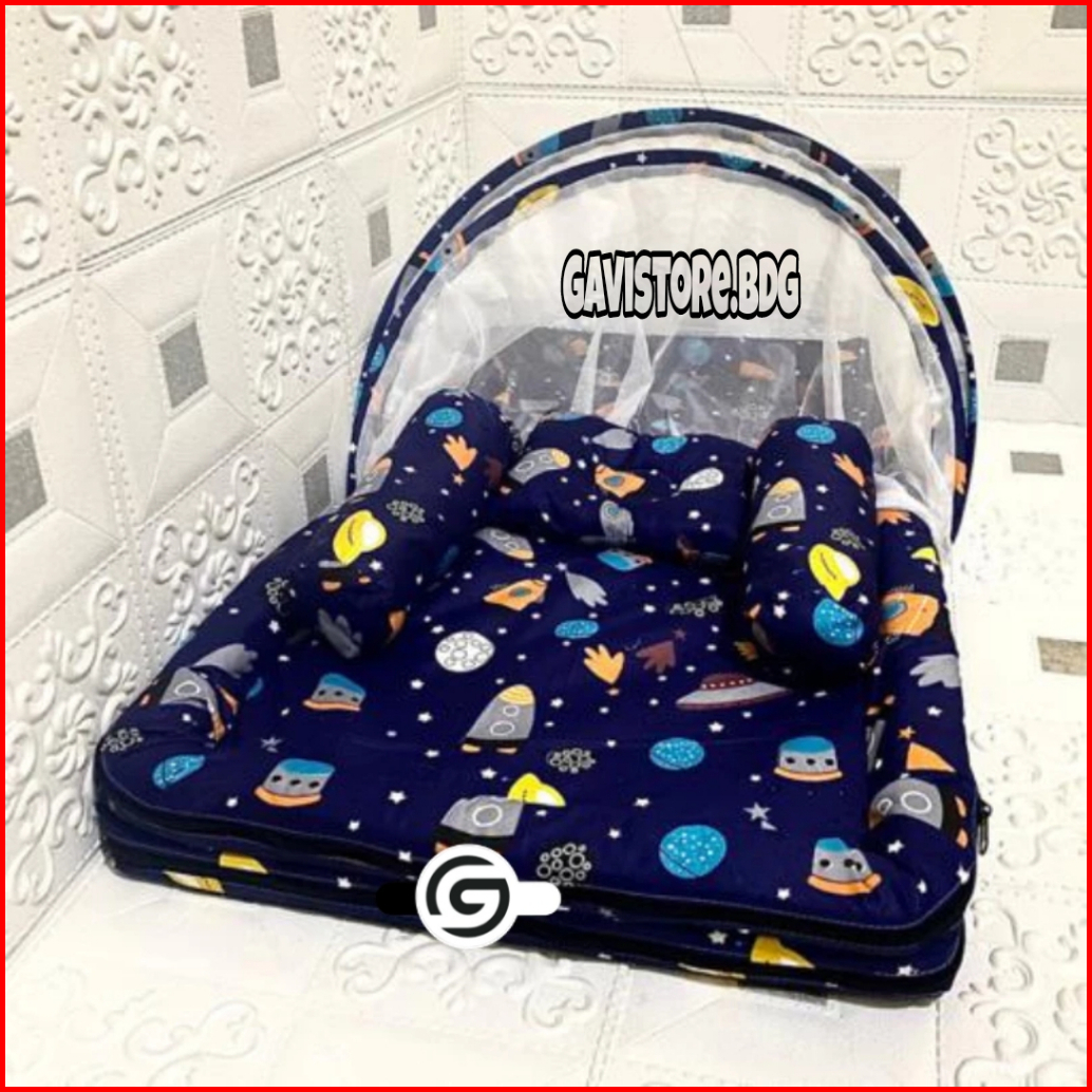 Kasur Bayi Set Kelambu Free Bantal Peyang Dan Guling Katun Cvc Isian Full Silicon Empuk Bisa Di Cuci