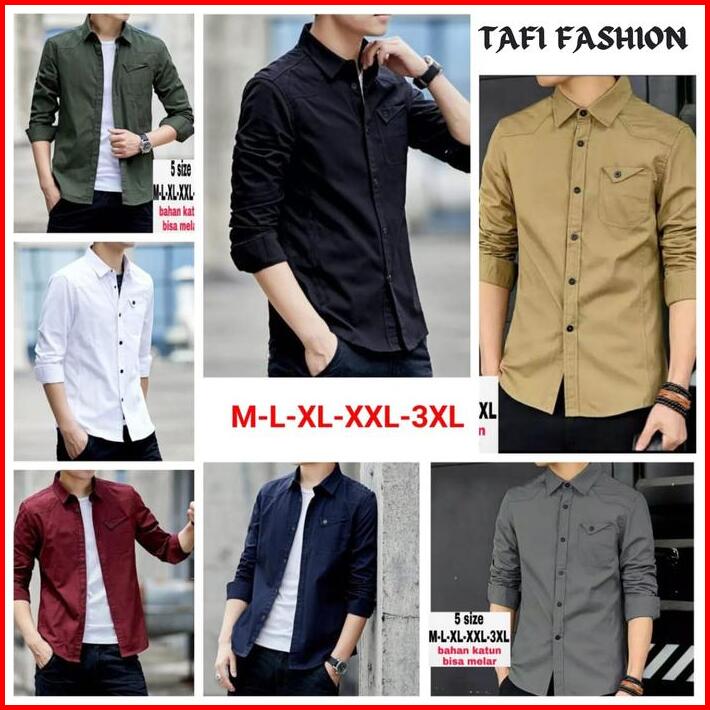 Kemeja Pria Casual Tc-maikel Baju Hem Pria Lengan Panjang Kasual Polos