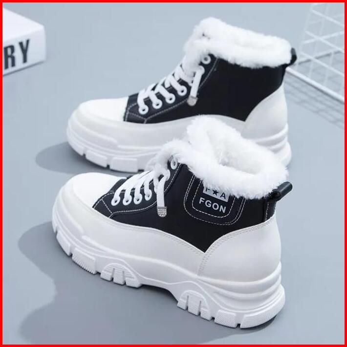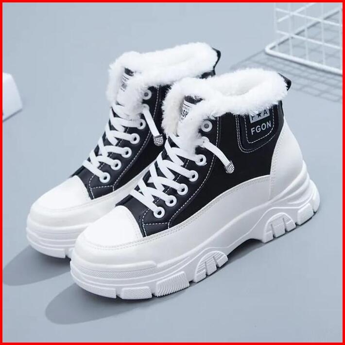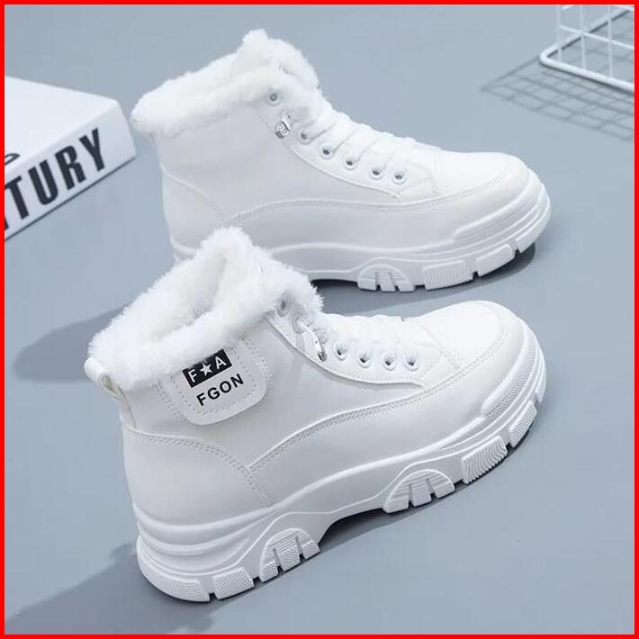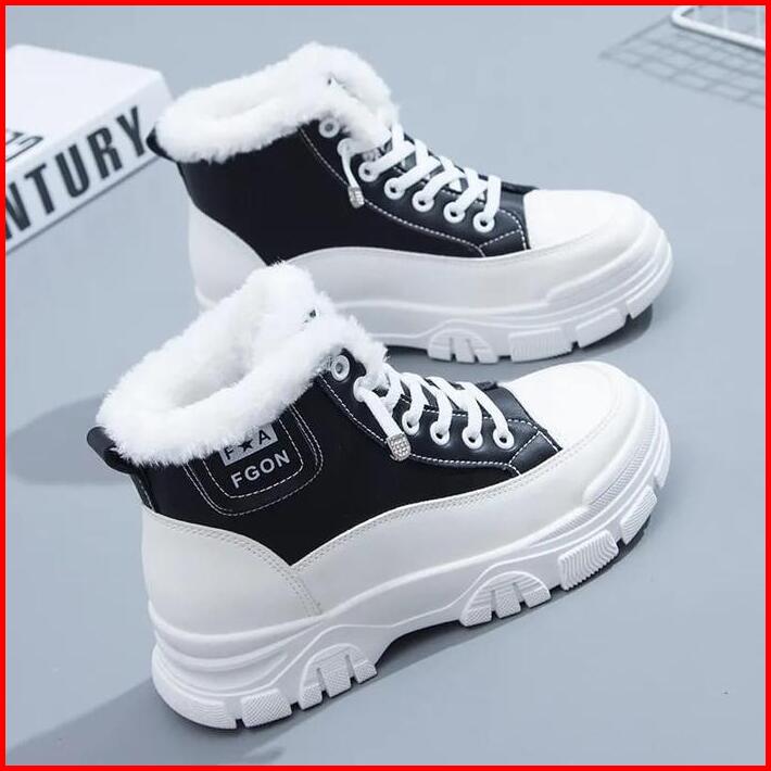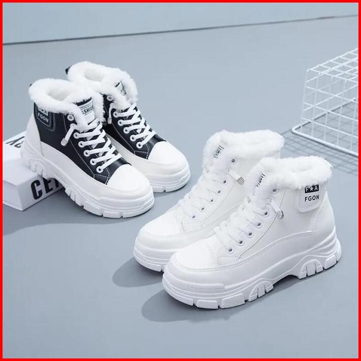 Sepatu Boots Wanita Korea Sneakers Kulit Berbulu Hangat A-young