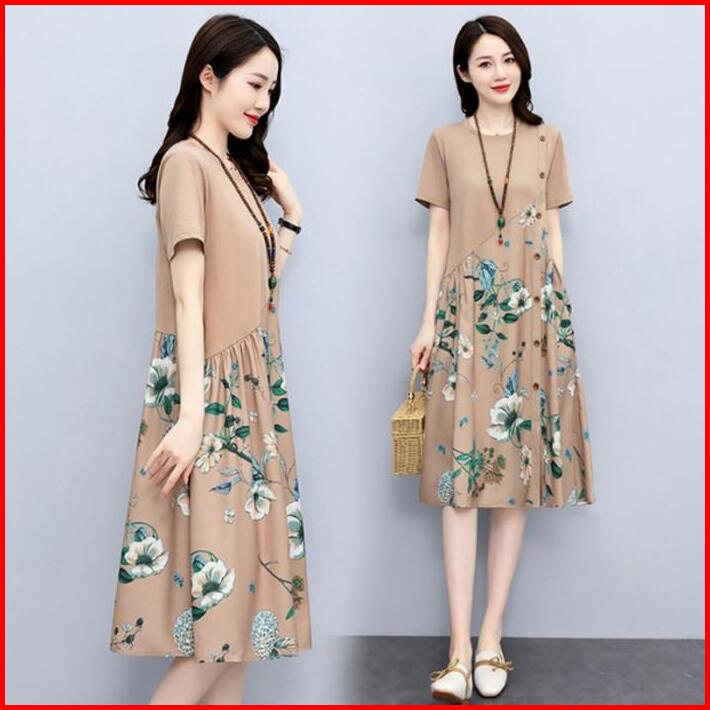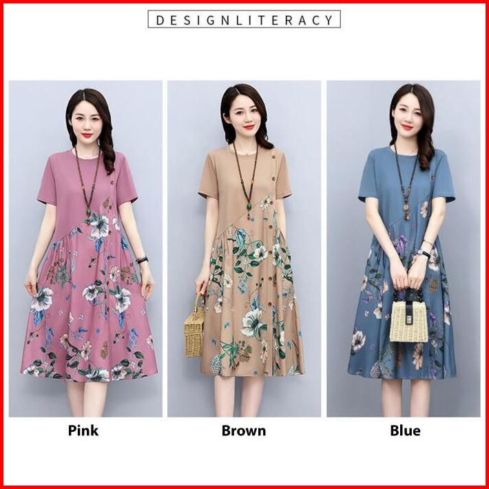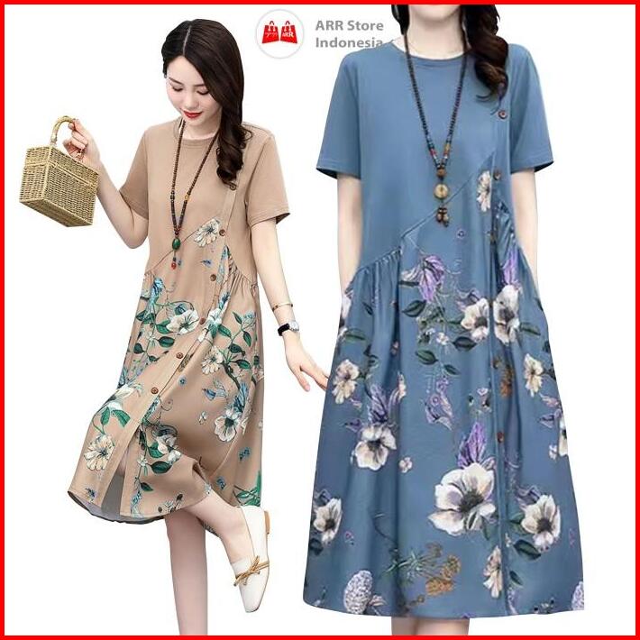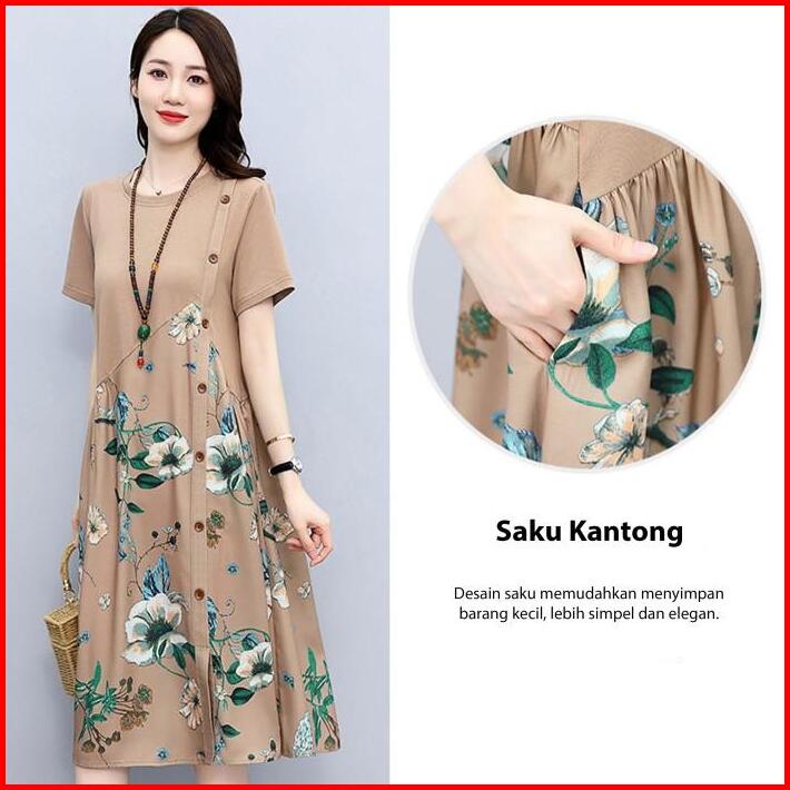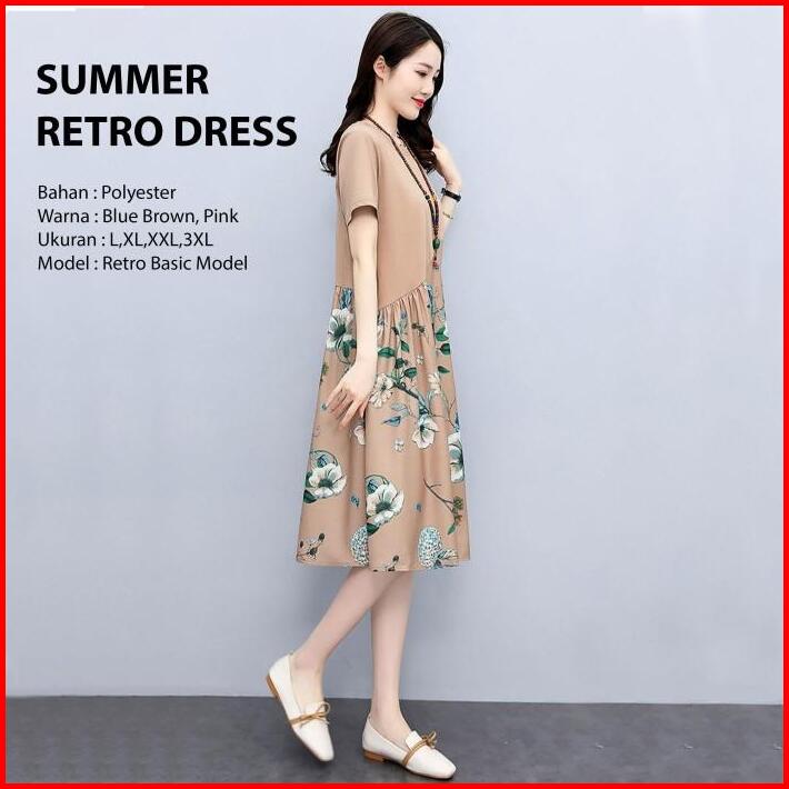 Dress Wanita Midi Dress Tropical Flowers Dress Bali Casual Retro Selutut 3 4 Import Dmw001