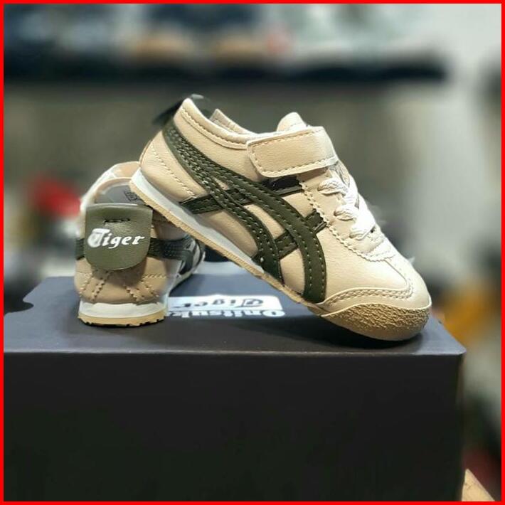 Sepatu Anak Laki Perempuan Cowok Cewek Tali Perekat Cream Army Premium